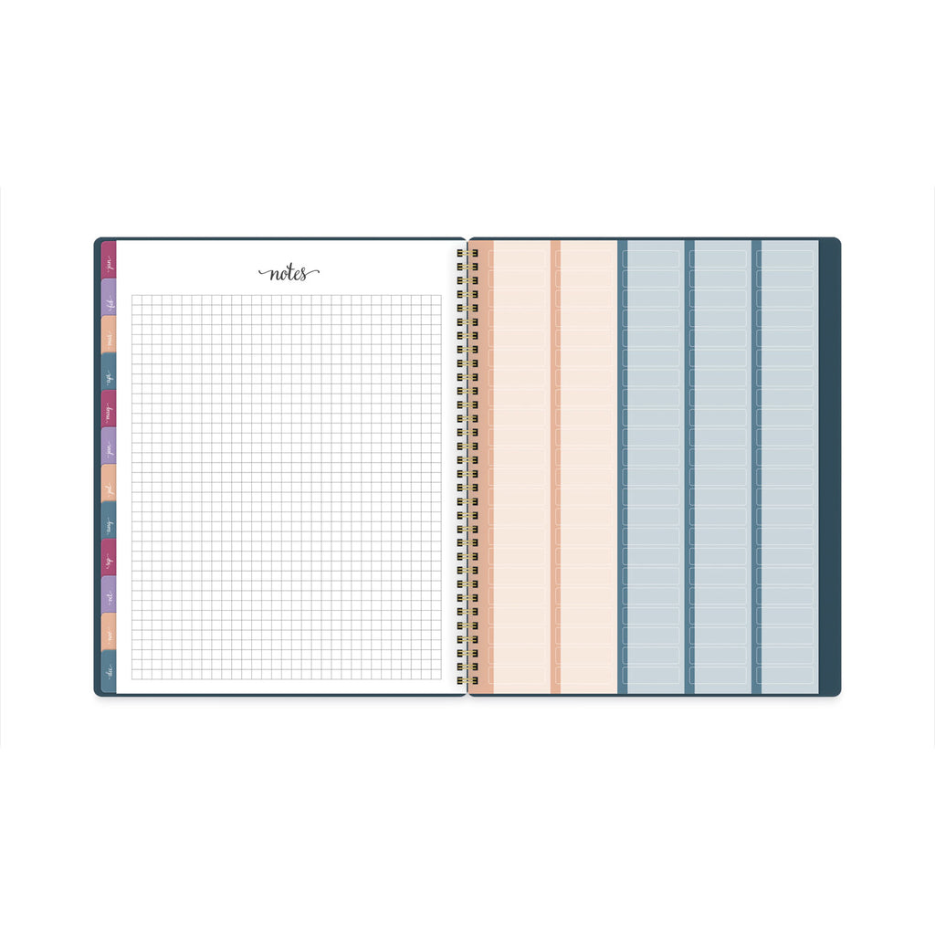 - One month per two-page spread has unruled daily blocks and space to list goals, to-do's, notes and ideas.