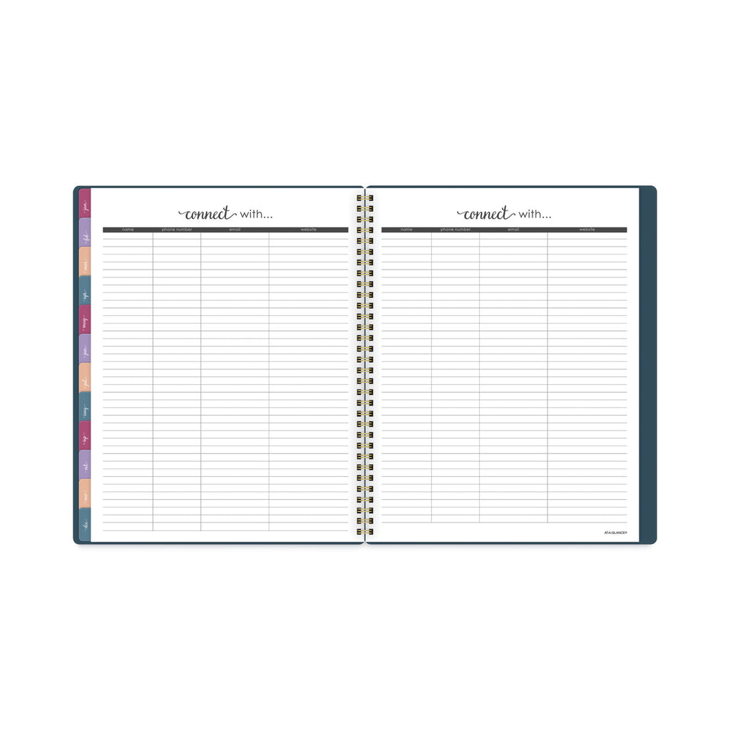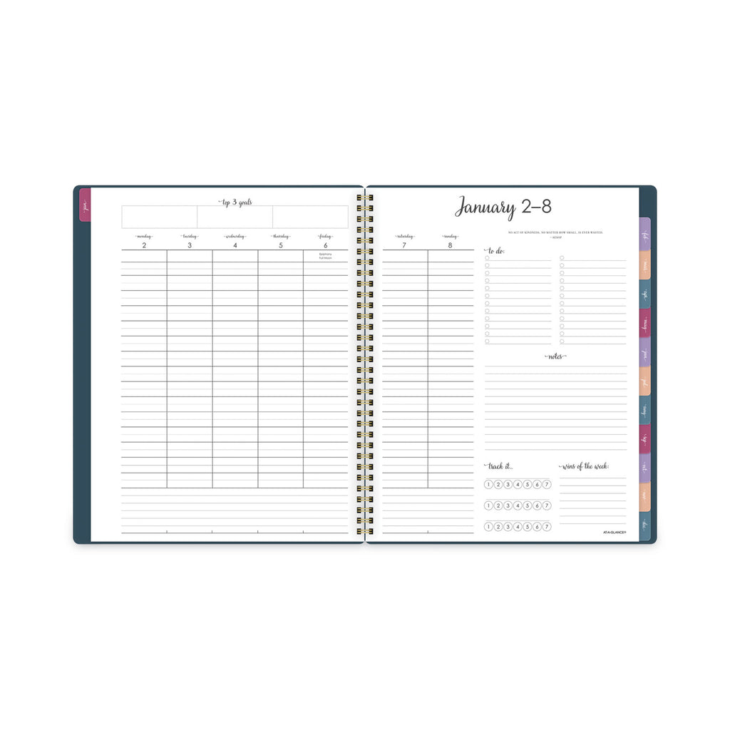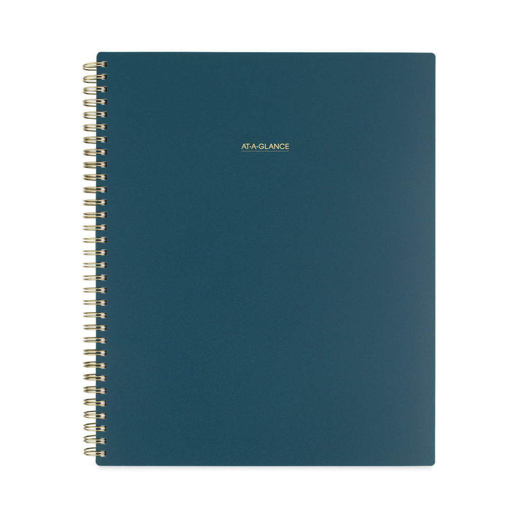 - Planner features a durable, stylish poly cover with gold twin-wire binding.