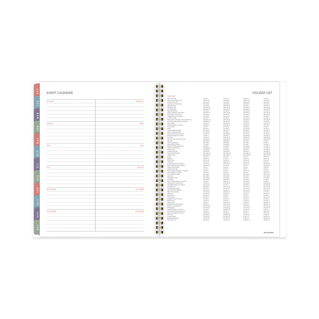 - Special pages include a holiday list, contacts, notes, reference calendars, event calendar and a double-sided poly pocket to store loose sheets.
