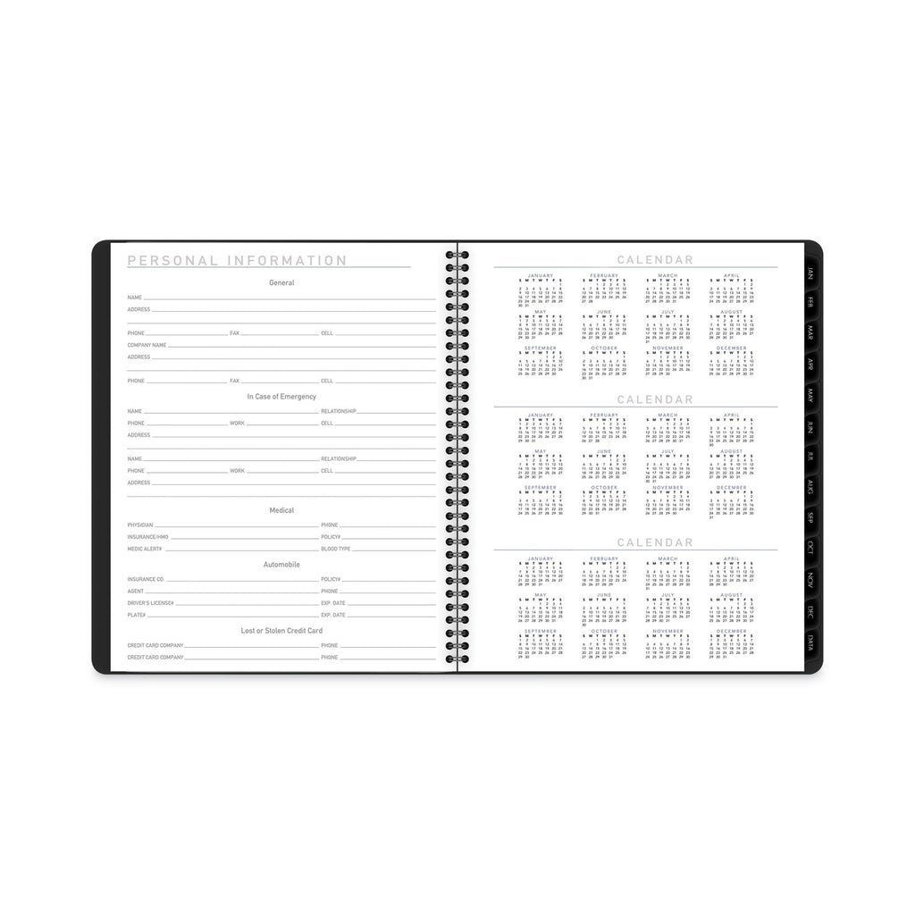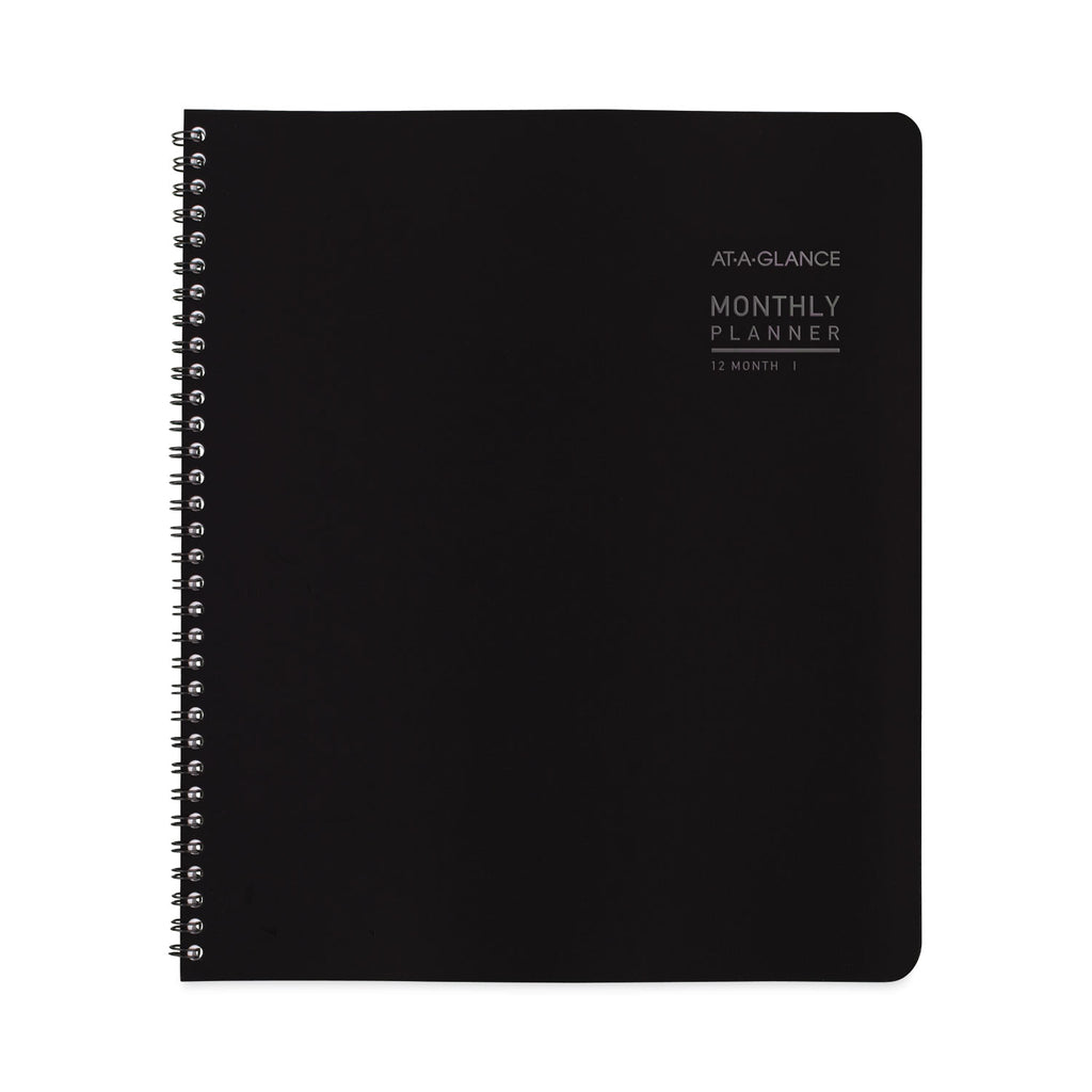 Keep your plans clear and simple with a little help from an AT-A-GLANCE Contemporary Lite Monthly Planner. Monthly spreads with space for priorities allow you to keep track of what's important. Black planner features silver foil accents for a sleek, professional look. It covers a 12-month date range from January to December and is guaranteed to last all year. High-quality paper features superior ink bleed resistance. One month per two-page spread with unruled daily blocks features a priorities section and past/future calendar references. Months are tabbed for easy navigation. Special pages enhance your organization and include four notes and a 3-year reference calendar. Ideal for transport, the flexible yet durable cover keeps its shape. Twin wire binding prevents snags and secures pages. ACCO Brands will replace any AT-A-GLANCE planner that is returned within one year from the date of purchase. This guarantee does not cover damage due to misuse or abuse.