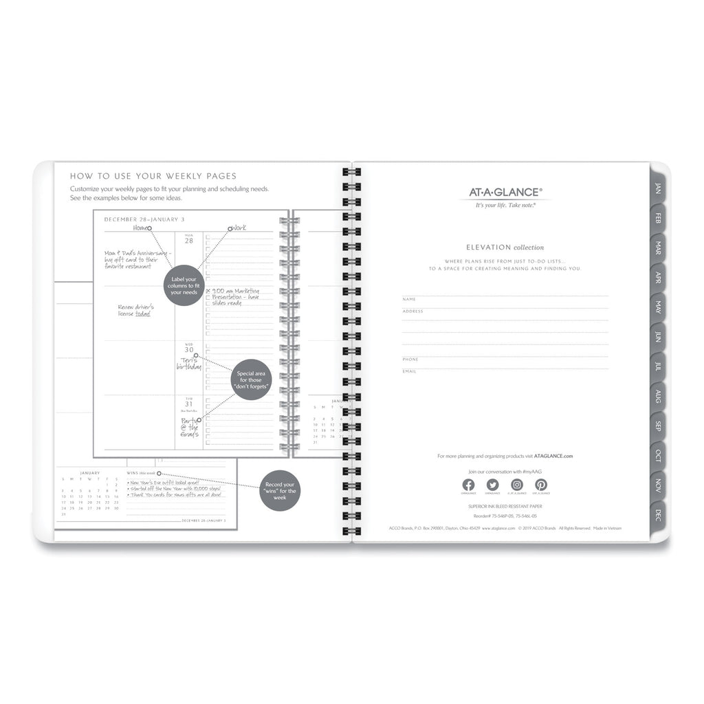 You'll wonder how you ever lived without it! This planner is guaranteed to last all year. Durable linen cover will hold up to the chaos. Plan your schedule for the entire year with pages that go from January to December. The unique weekly spreads give you open planning areas to keep track of all you do in one place. Take in your achievements at a glance (see what we did there?) on spacious monthly spreads. Hold it all together, from work to home and everywhere in between, with sturdy twin wire binding. Turn the page and leave the past behind. Our quality paper resists ink bleed. Includes ample space to capture your ambitions.