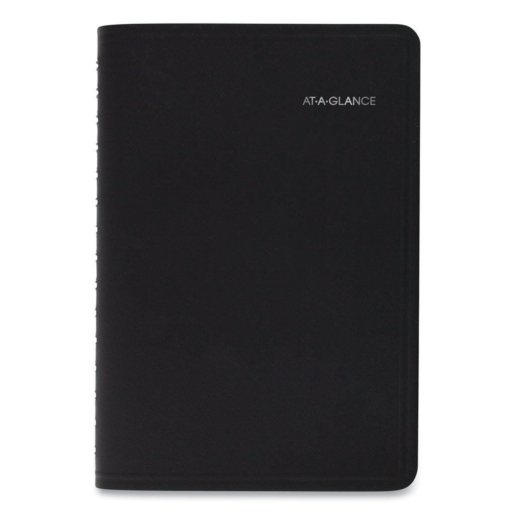 - Black, simulated-leather cover includes a convenient storage pocket; wirebound.