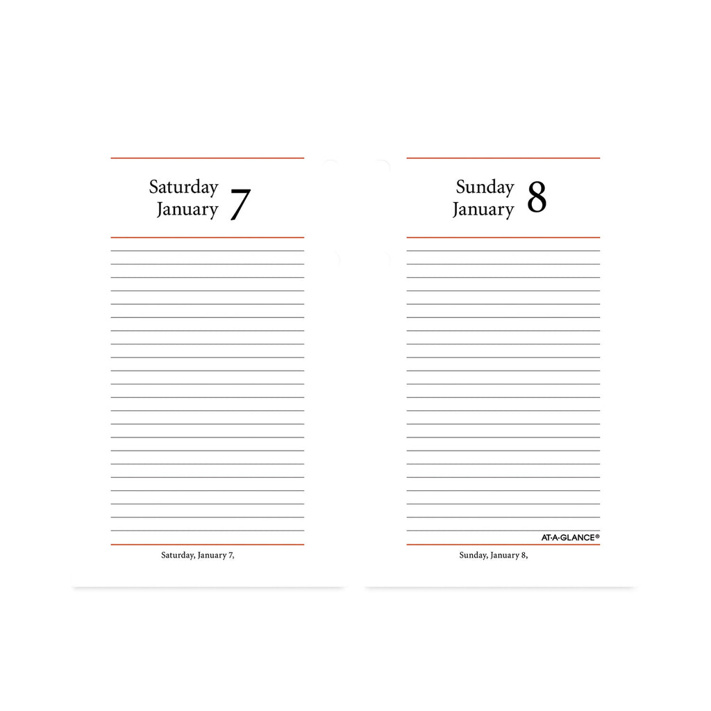 - One day per two-page spread ruled for open scheduling; Saturday/Sunday combined.