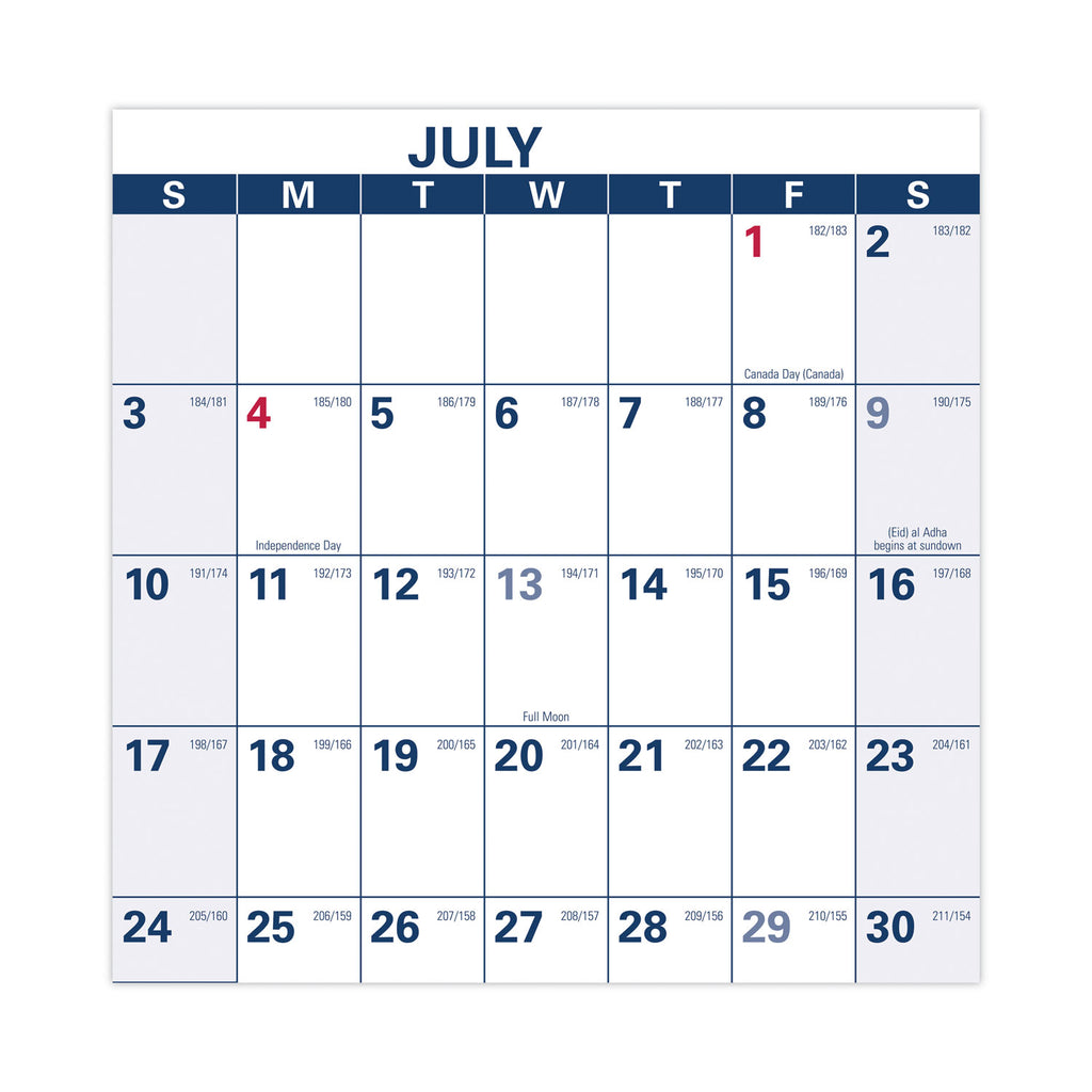 - Bold, large print and bright white background makes notes easier to see and read on this 48" x 32" page size calendar.