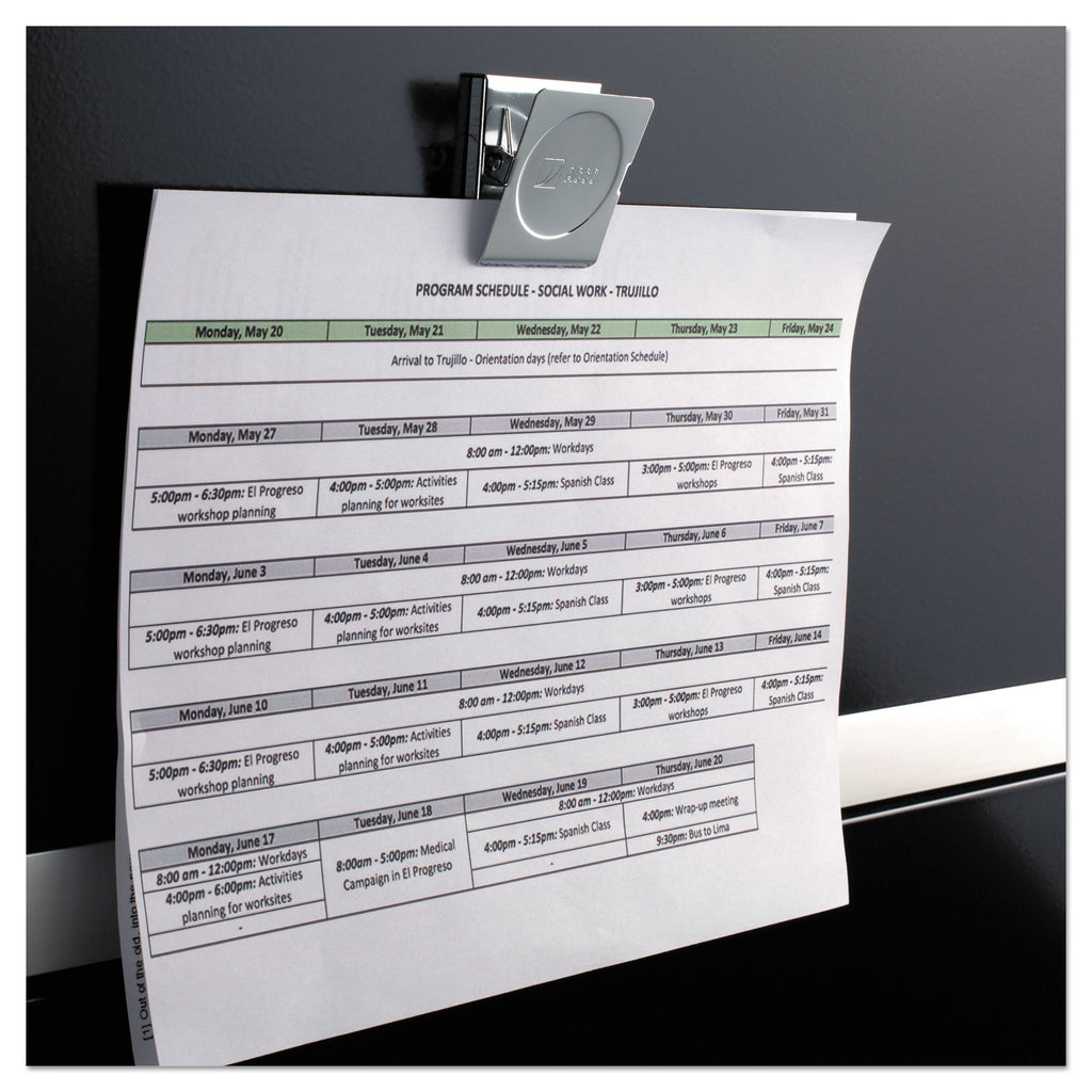 Super-strong magnetic clip keeps papers in their place. Super-strong magnet and spring. Adheres to any steel surface for heavy-duty holding power.