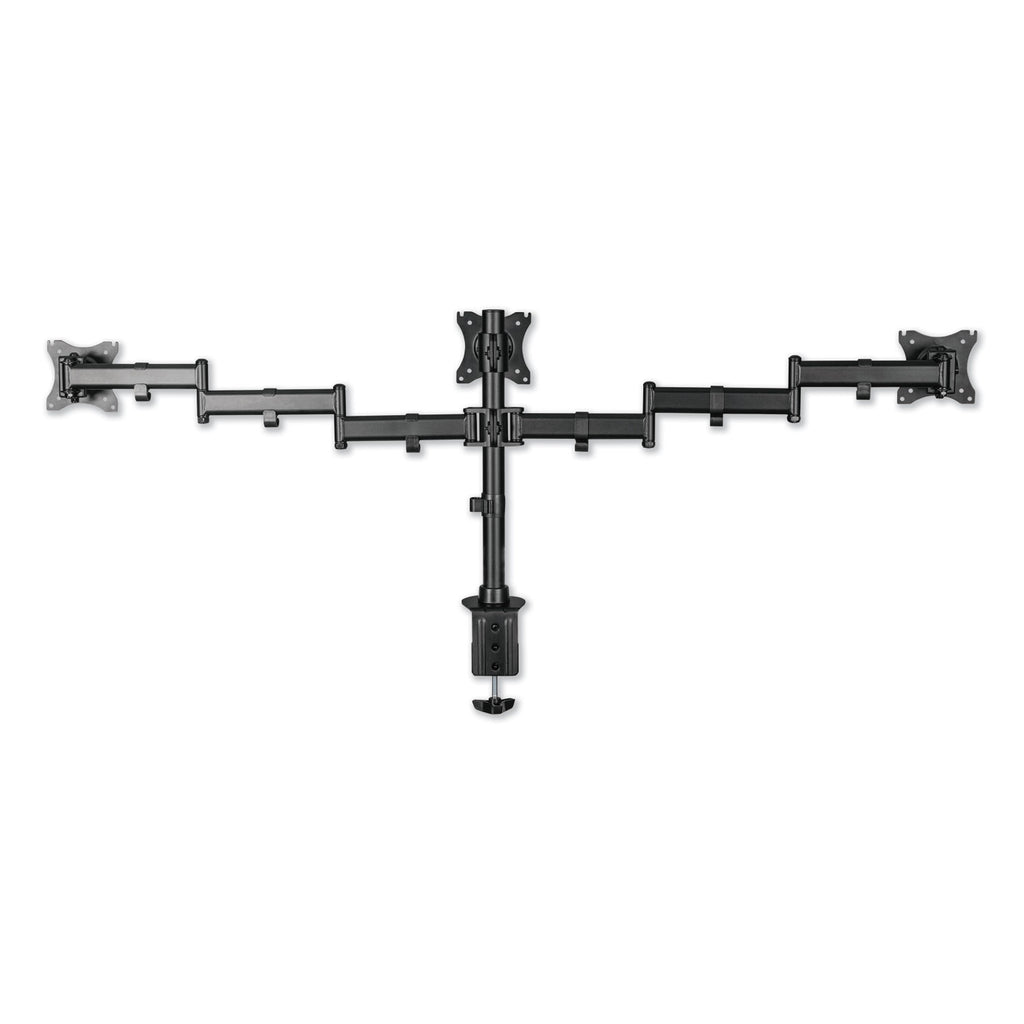 Easily adjust your monitor with this economical, manually adjusted monitor arm. Simple linked extension arm extends in or out, tilt or rotate for your perfect height. Height adjustable along the length of the pole mounted base. Strong durable construction withstand the rigors of the busy office. Easy to install clamp fits desk up to 4" thick. VESA MIS-D compliant for monitors up to 15 lbs and 27". Saves valuable desk space. Use with Alera® Sit-Stand Lifting Workstations.