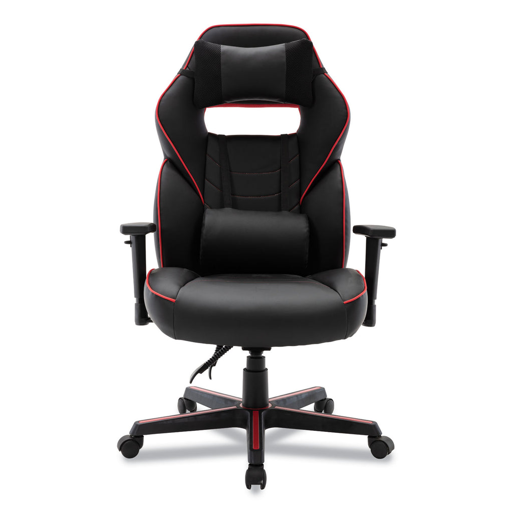 Whether you’re getting your game on, knocking out some homework, or leading a team from your home office you’ll be doing so in style and comfort with this Alera Gaming Chair. Inspired by top racing car seats, this chair delivers ultra-comfort and sleek styling. The 135 degree reclining seat allows you to lie back and take a break from the action. Dial in your perfect comfort level with such features as height adjust, tilt tension, tilt lock, adjustable arms and removable head and lumbar pillows. Score a quick win with the easy to assemble Alera Gaming Chair.