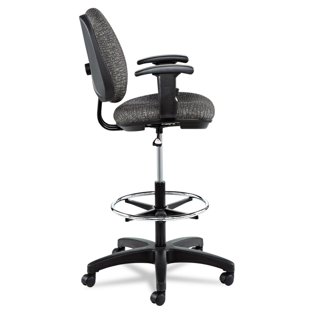 The swivel task stool is an ideal fit for tight workspaces and all-day seating comfort. Constructed with a durable, molded plastic shell that’s designed to resist impact. Built with a comfortable, waterfall seat edge, which helps to relieve pressure points on the underside of legs. Adjustable foot ring for optimal feet positioning. Five-star base with casters for easy mobility. Optional arms are sold separately.