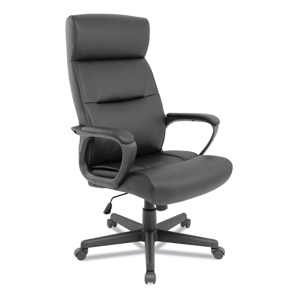 Create a sleek and professional office or work-from-home environment with the stylish and comfortable highback chair. Constructed with a soft upholstery that delivers a more comfortable seating experience with an inviting texture to keep you in place. Padded, fixed loop armrests support your upper body, so you can bounce between emails and conference calls. Fully customizable pneumatic seat height and tilt adjustment options. Five casters on a stable base allows mobility.