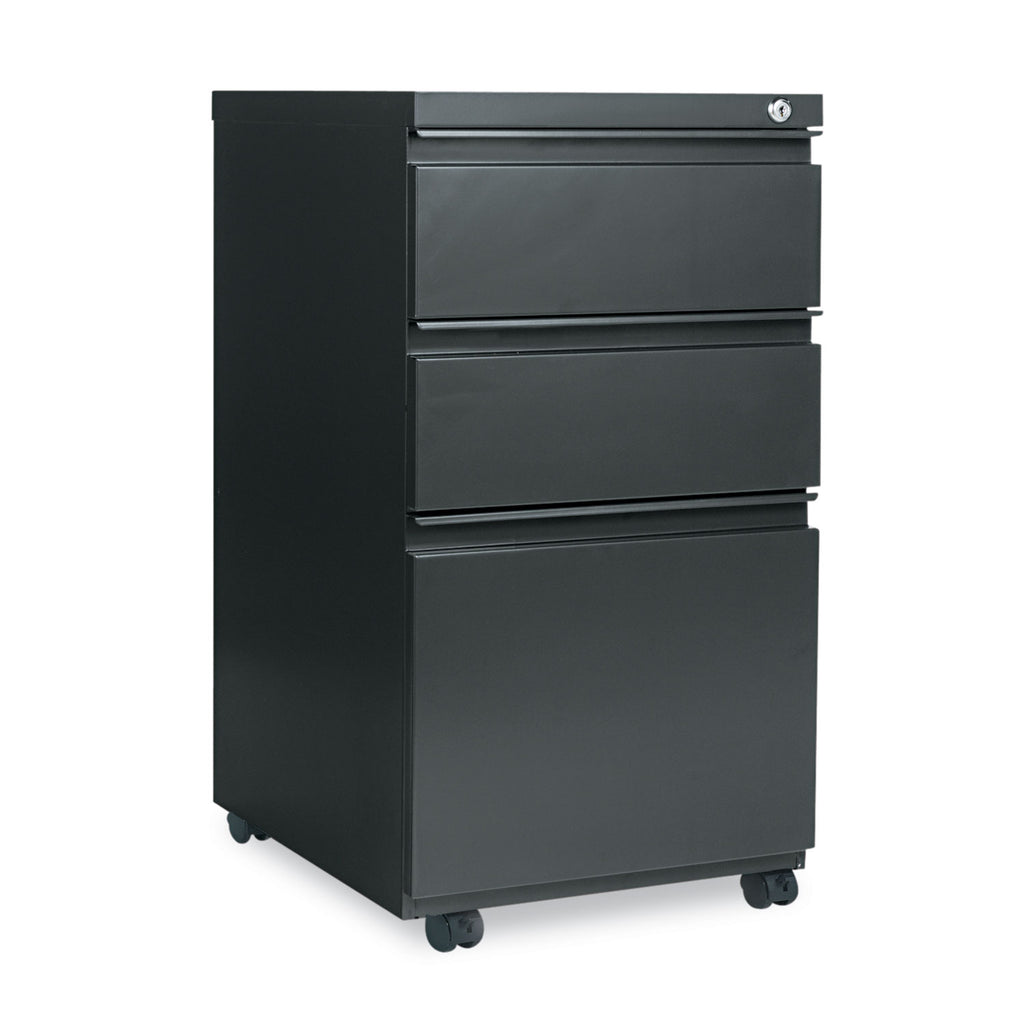 Get organized with a high-sided file cabinet with drawers that accommodate letter or legal-sized hanging files. Steel ball bearing telescoping slide suspension helps drawers glide smoothly and with ease. The counterweight prevents tipping. Equipped with four casters, two locking, two non-locking. Full-length pull permits easy opening. Single key core removable lock with two keys. Durable powder coated finish helps prevent scratches.