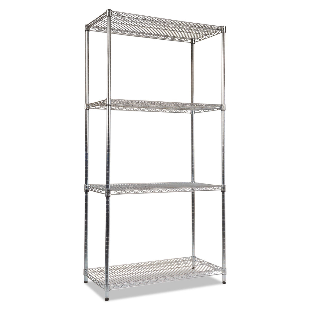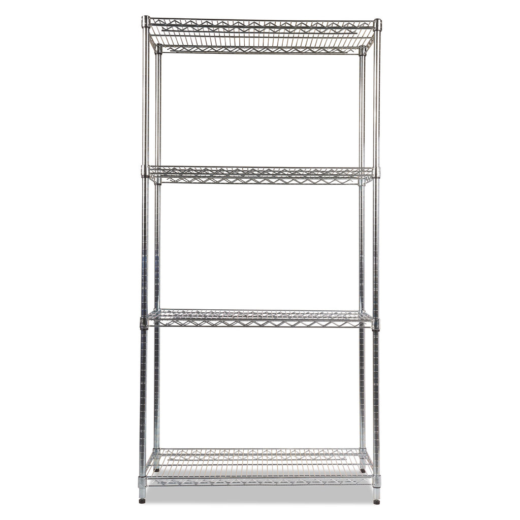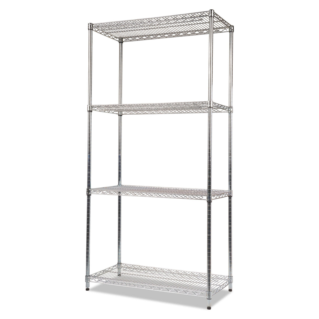 Ideal storage solution for industrial and commercial use. Snap-together design assembles in minutes. Strong welded wire construction. Can be set up as a four-tier single rack or as two two-tier racks to meet specific needs. Open design allows air circulation and reduces dust build-up.