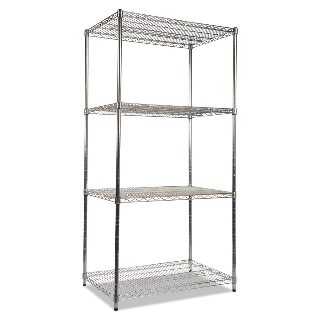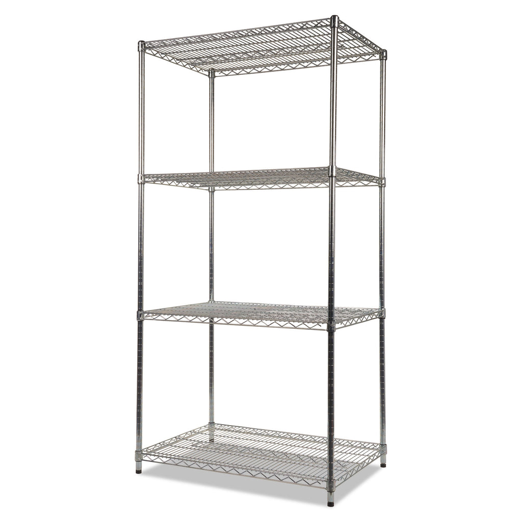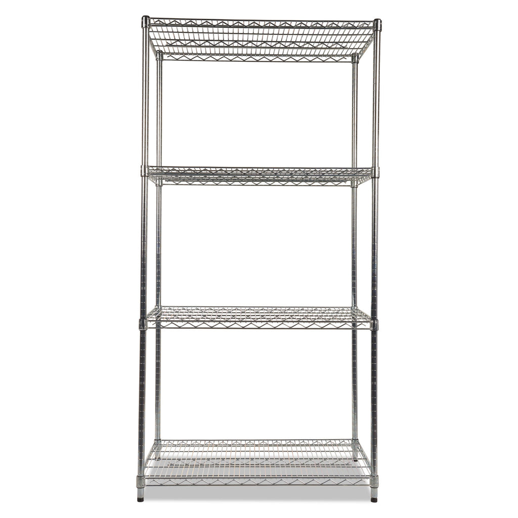 Ideal storage solution for industrial and commercial use. Snap-together design assembles in minutes. Strong welded wire construction. Can be set up as a four-tier single rack or as two two-tier racks to meet specific needs. Open design allows air circulation and reduces dust build-up.