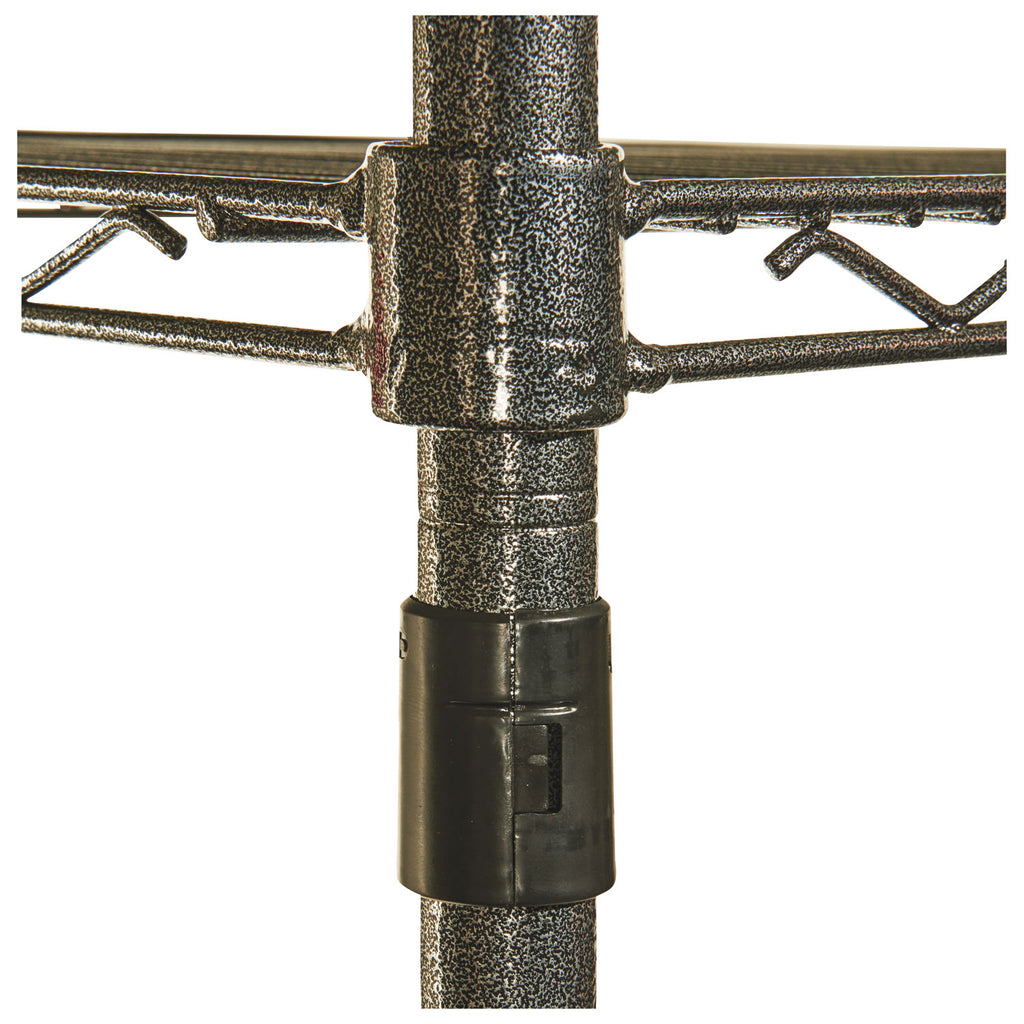 Ideal storage solution for commercial and restaurant use. Black Anthracite finish is National Sanitation Foundation (NSF) certified for wet and dry environments. Open design that allows for air circulation. Snap-together design assembles in minutes. Can be set up as a four-tier single rack or as two two-tier racks to meet specific needs.