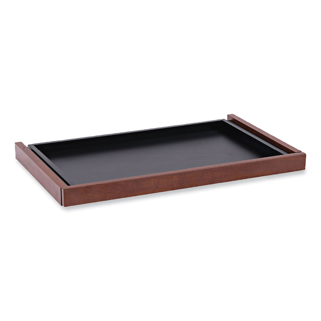 Keep desk supplies organized and in-reach with a Valencia series center drawer that glides in and out. Constructed with durable, thermally fused, woodgrain laminate finish for an elegant look that will withstand the test of time. The coordinated finishes blend in seamlessly to supporting Alera® furniture pieces. Designed for use with any desk, credenza, return, or bridge in the Alera® Valencia Series.