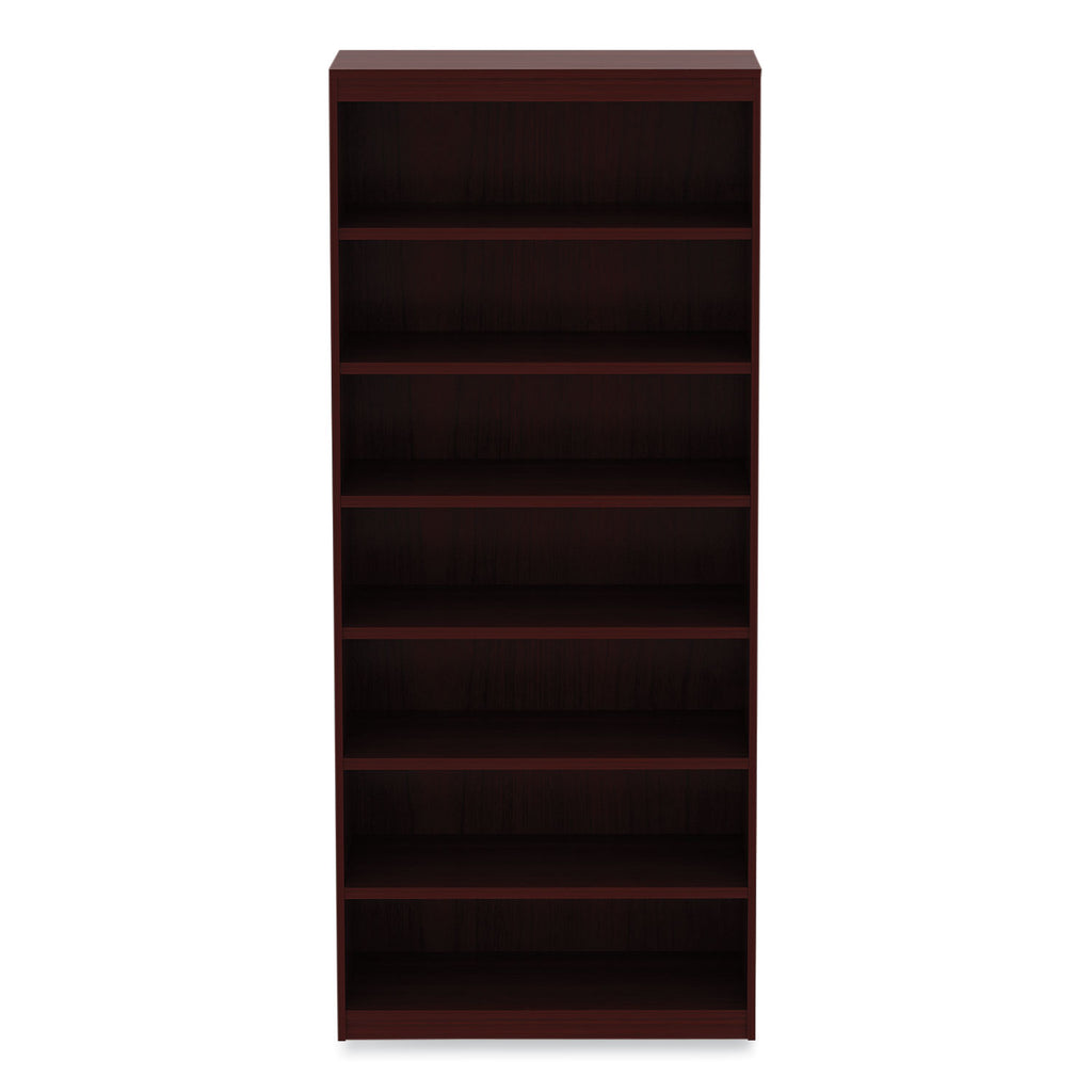 Woodgrain laminate bookcase features a contemporary design that fits perfectly in professional environments. Commercial-grade side panels with protective 3 mm edge banding provide excellent dent and scratch resistance. Generous 11.5" deep shelves accommodate three-ring binders and large publications. Quick-lock fasteners allow easy assembly. Shelf count includes fixed middle and bottom shelves.