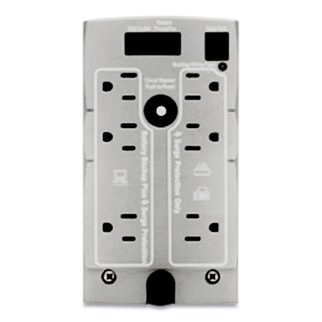 Combination of battery-protected and surge-only outlets reserves power capacity for connected equipment that requires battery back-up. Dataline Surge Protection provides protection of connected equipment on the data lines. Power conditioning protects connected loads from surges, spikes, lightning, and other disturbances. Audible alarms delivers notification of changing utility power and UPS conditions. Automatic restart of loads after UPS shutdown upon the return of utility power for exceptional convenience. Automatic battery self-test ensures early detection of a battery that needs to be replaced. LED status indicators helps you to quickly and easily understand UPS status. Battery replacement without tools for reduced risk of load disruption. Transformer-block spaced outlets keeps equipment secure without blocking access to other receptacles. Resettable circuit breakers enables quick recovery from UPS overload events.