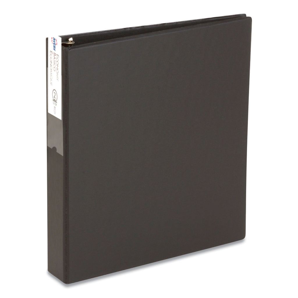 Simple is the smart way to go. For convenient organization of your documents, it doesn't get much simpler than this handy Economy Binder. Three round rings hold papers to let you flip through notes, reports and more without getting your pages out of order. With room to spare, class notes, employee handbooks and other important papers will find a perfect home. Slip loose pages into the two interior pockets for easy access later. Rings are mounted on back cover for a clean spine and pages lie flat.