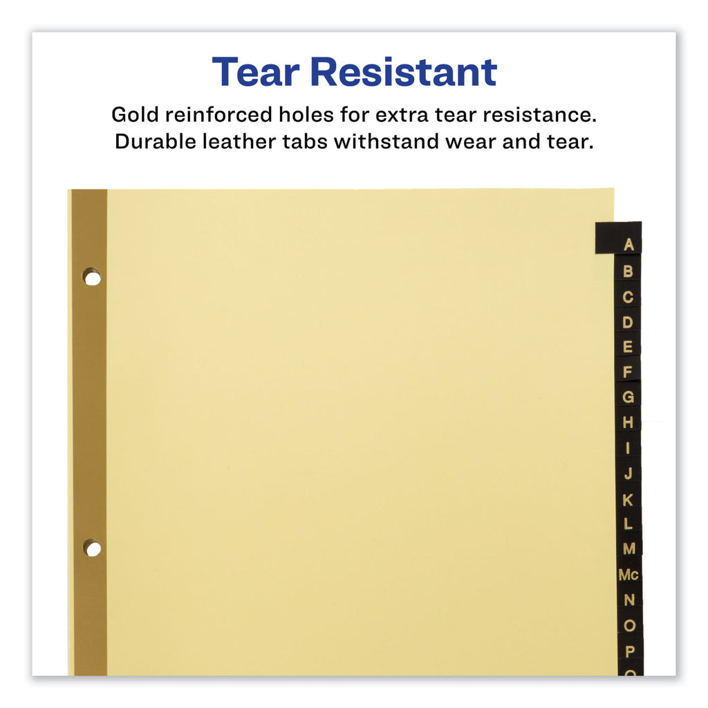 Organization is yours in an instant. These Black Leather Preprinted Dividers help you get sorted as soon as you insert them in your binder or notebook. More efficient organization for alphabetical, chronological or numerical sorting. Leather tabs offer a durable solution that you can thumb through again and again. Combined with gold lettering, the tabs add a classic and elegant touch to your binder. Now that's instant gratification.