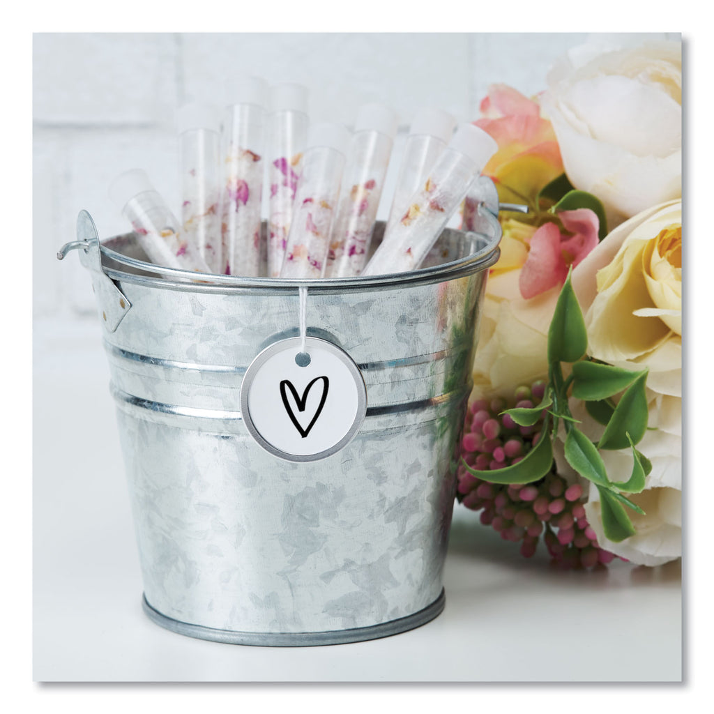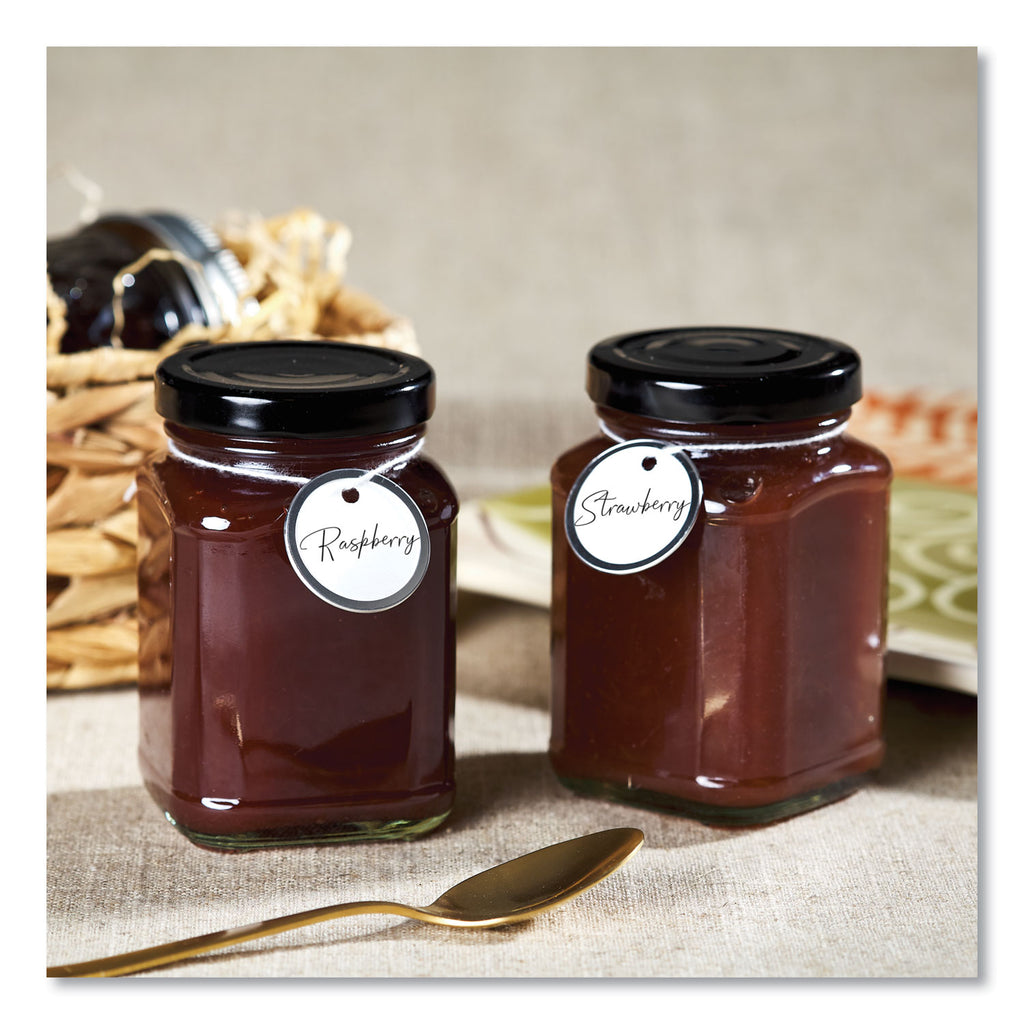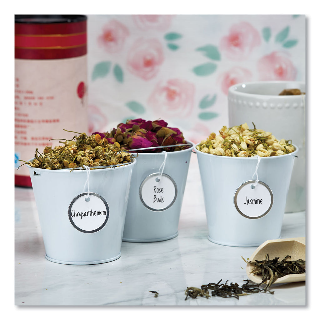 Get ready for a tag that stands up to pressure. These Metal Rim Tags are constructed of white stock with a rim of durable metal. The stock provides a smooth, clean surface for writing, while the non-tarnish metal rim reinforces the tag to keep it from bending, twisting or tearing, making the tags ideal for situations where they will be handled frequently or roughly. The knotted white string lets you easily attach the tag to your item. For strength and durability, this tag is the answer.