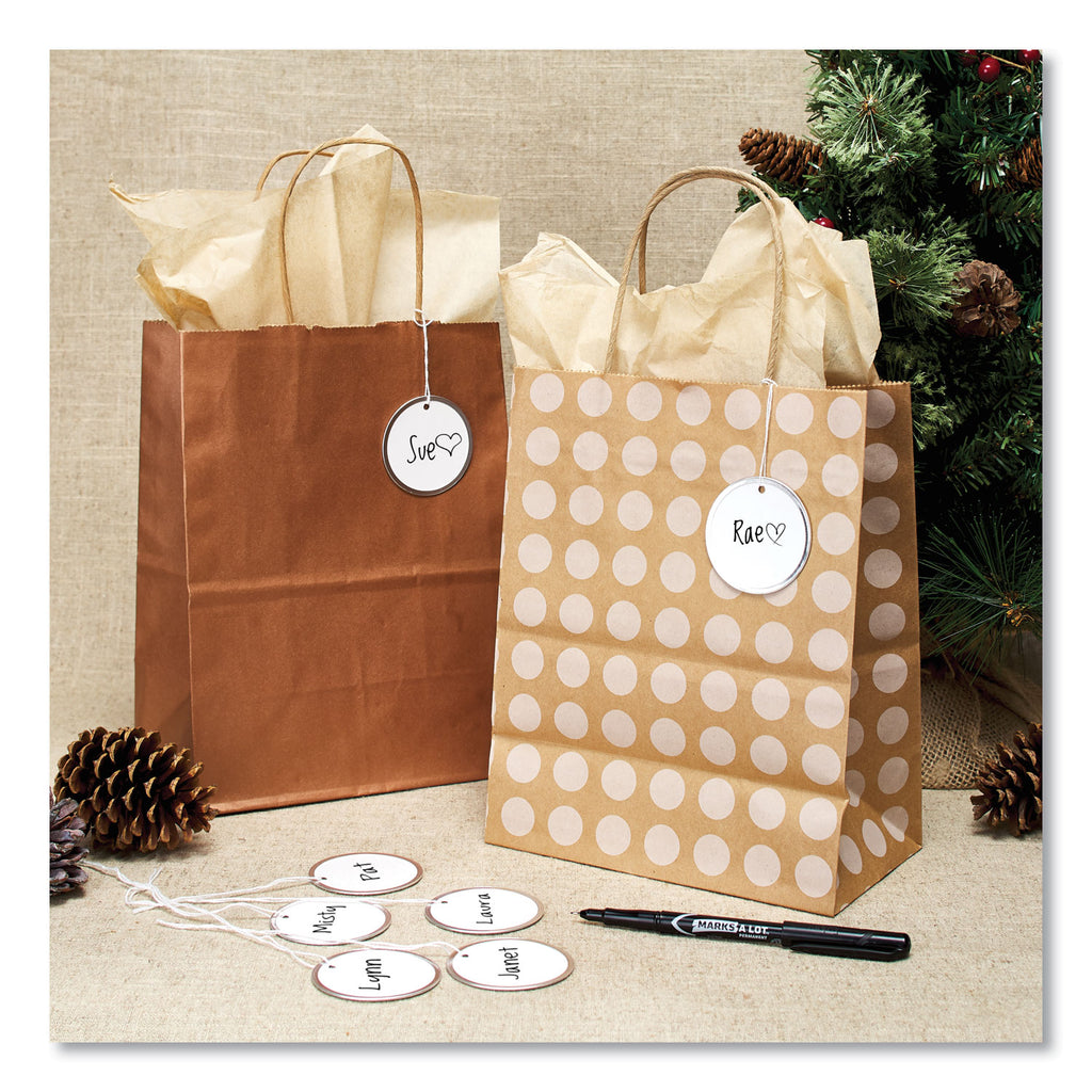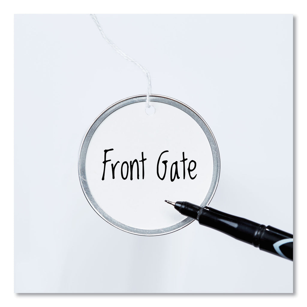 Get ready for a tag that stands up to pressure. These Metal Rim Tags are constructed of white stock with a rim of durable metal. The stock provides a smooth, clean surface for writing, while the non-tarnish metal rim reinforces the tag to keep it from bending, twisting or tearing, making the tags ideal for situations where they will be handled frequently or roughly. The knotted white string lets you easily attach the tag to your item. For strength and durability, this tag is the answer.