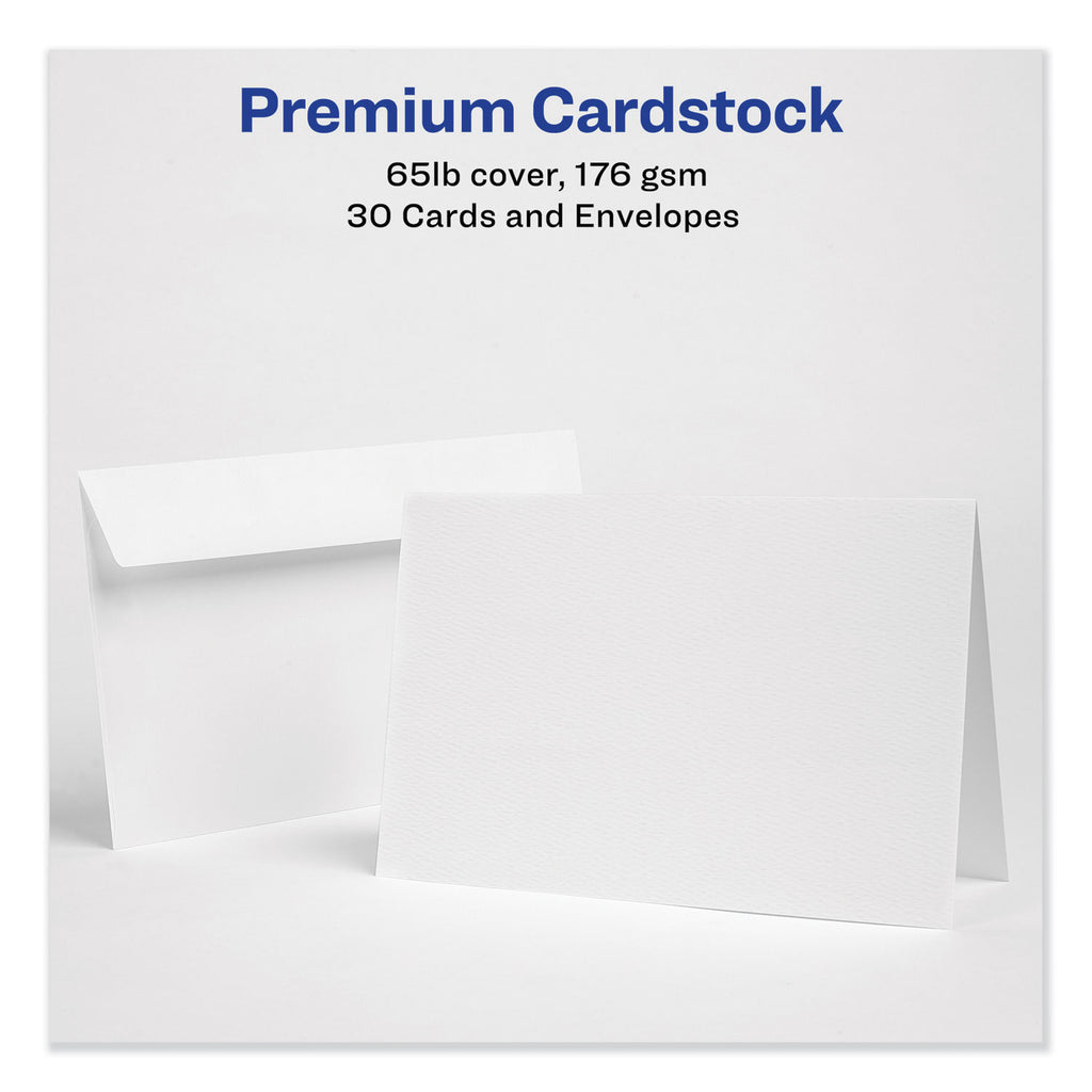 So you're fond of receiving invitations or season's greetings in the mail? Return the favor with a message of your own with these printable Greeting Cards. To get started, check out the wide selection of free designs and templates on Avery Design & Print or use your favorite digital photos for a personal touch. Design in portrait or landscape orientation and feed heavyweight card stock through your printer and watch as the high-resolution color makes images come to life. Cards are scored for easy folding and come with matching envelopes. Few things say "thinking of you" quite like a custom-made card. 8.5" x 11" sheets for inkjet printers.