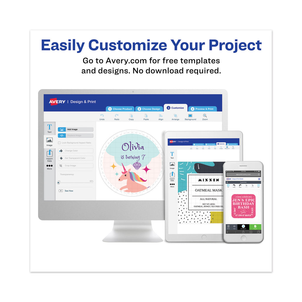 Have something important to say? Customize your white labels with attention-getting images or make your most important messages stand out with high-visibility color labels. Ideal for announcements, priority messages, addressing, color-coding, identification/warning labels and more! Easy to customize with free templates from Avery® Design & Print. For laser printers. Now you've got their attention.