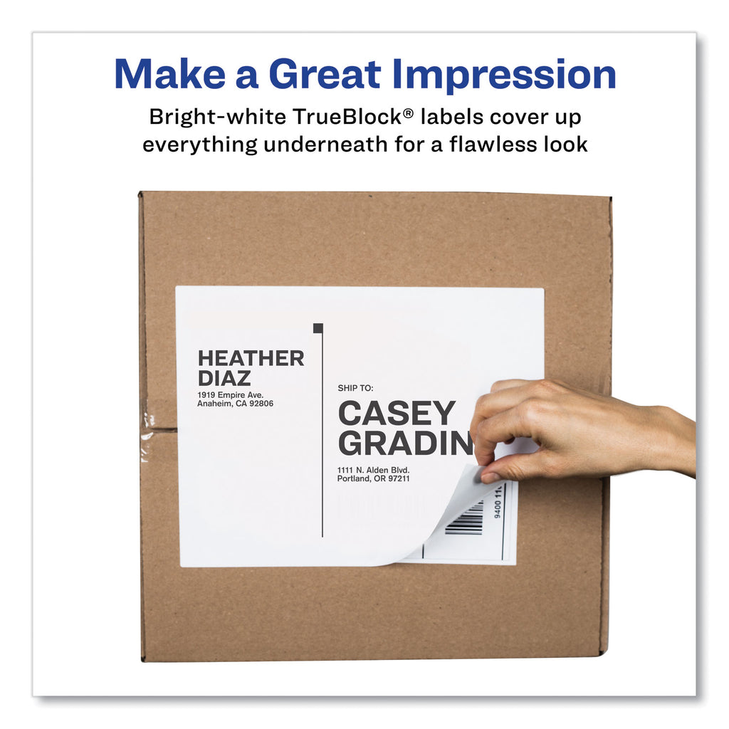 Make sure your packages get where they're supposed to go without any confusing markings showing through when you use these shipping labels. TrueBlock® Technology completely covers everything underneath. The adhesive sticks to more tough surfaces, ensuring your label doesn't fall off your package. It's easy to create custom labels with logos, barcodes and more. Just print your labels right from your own printer. It's easier than ever to get the job done right.
