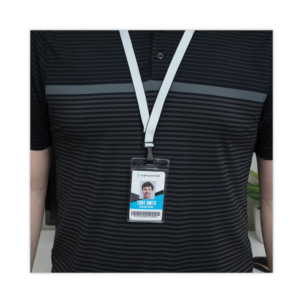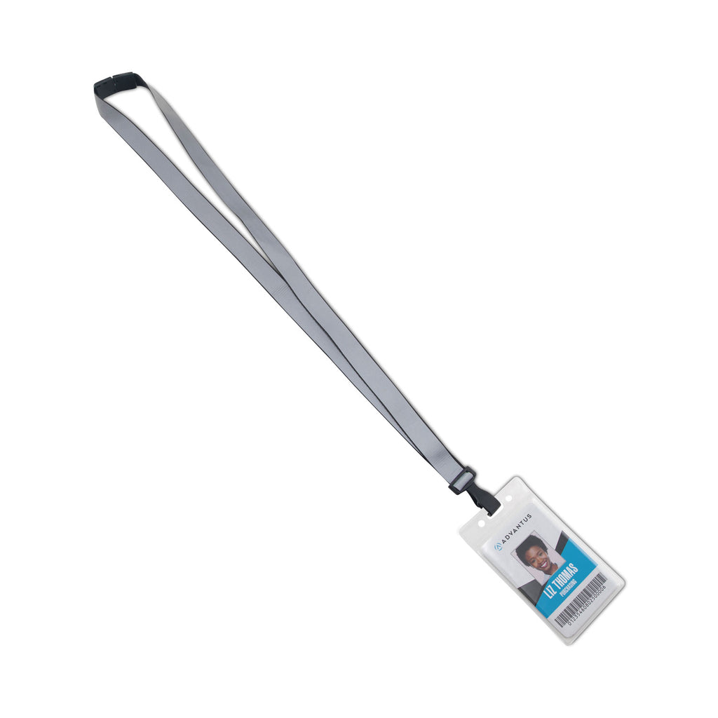 Lightweight lanyard holds badge without attaching to clothing. No frills or fuss, this lanyard features a breakaway connector to ensure safety if snagged, pulled or caught. Designed to keep identification information always in view. The badge clip easily attaches to badges and ID cards. Secure way to keep credentials at your fingertips.