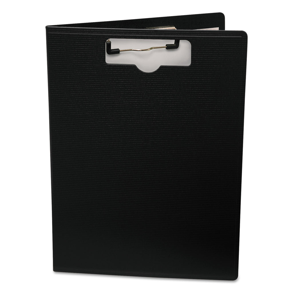 Textured cover provides privacy, protection, and professional look. Open portfolio and fold the cover back to use as a traditional clipboard. High-friction rubber grips hold letter size papers securely in place. Made from recycled content helps conserve natural resources.