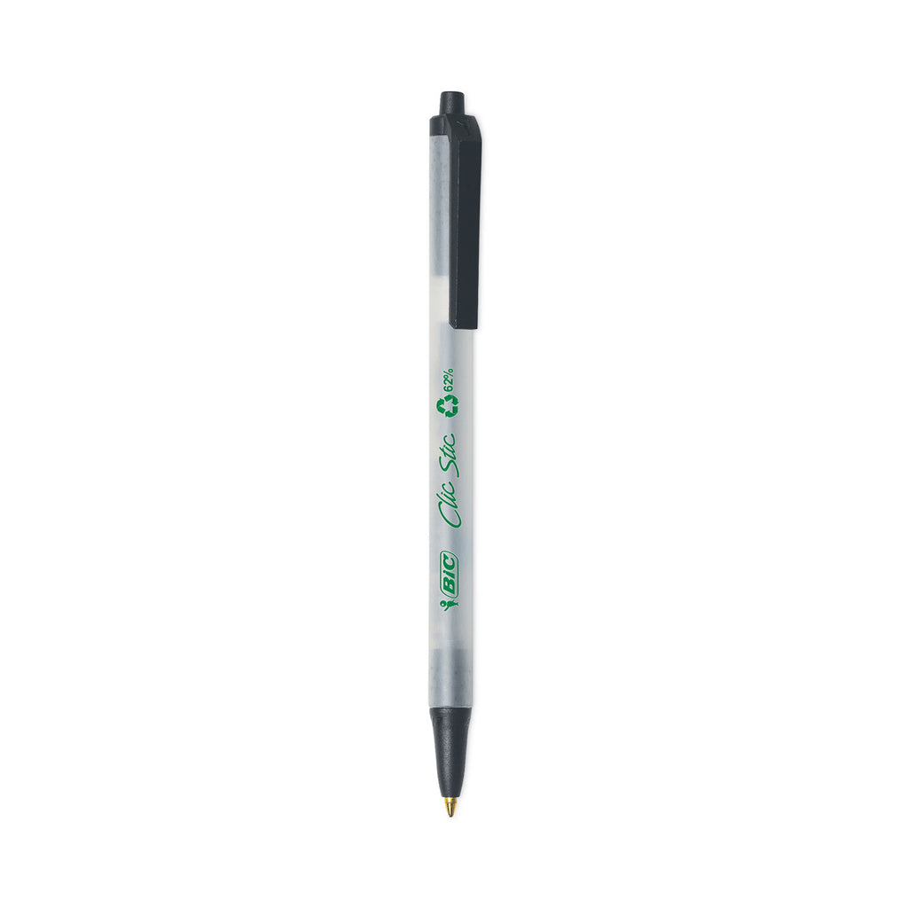 The BIC ReVolution Clic Stic ballpoint pen is made of recycled plastic and the packaging is made entirely of recycled materials. It has a multipurpose ballpoint tip and long-lasting ink delivers hours of writing. The slender, round semi-clear barrel is not only comfortable to (be)hold, but it's also got a handy window for checking your ink level. Use the convenient clip to hook it onto your pocket or notebook and take it everywhere you go. And since it's retractable, there's no cap to lose!