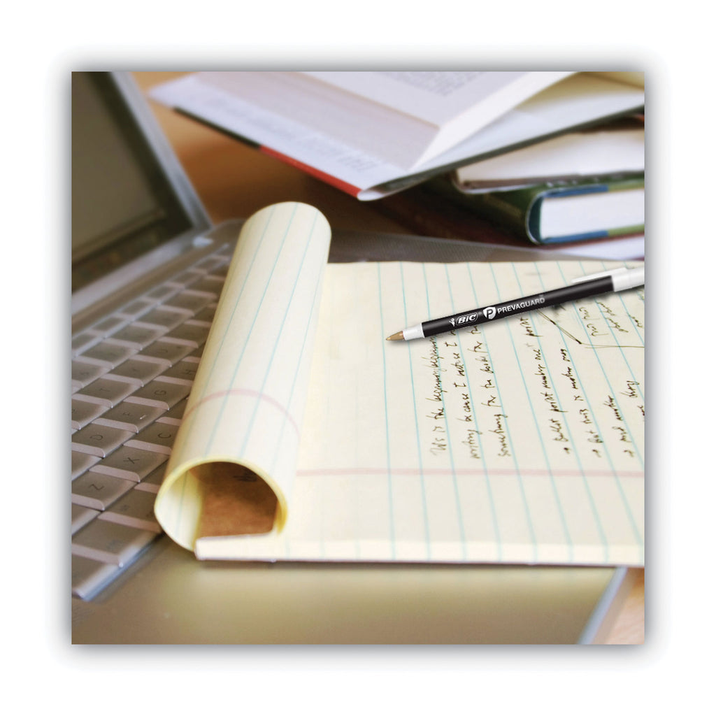 BIC Prevaguard Round Stic Ballpoint Pen contains an antimicrobial agent incorporated into the plastic that protects the pen itself by suppressing the growth of bacteria, algae, fungus, and mildew. These products protect the pens themselves and do not protect users or others from disease-causing bacteria, viruses, or germs. The antimicrobial agent should last the lifetime of the pen’s plastic unless the plastic is destroyed. Along with the antimicrobial agent on the pen, the Round Stic Pen is the BIC product you know and love. This pen also features a medium 1 mm ballpoint that delivers smooth writing to create vivid, highly visible lines ideal for note-taking, drafting, doodling, and other writing activities. PrevaGuard is a registered trademark of Koozie Group.