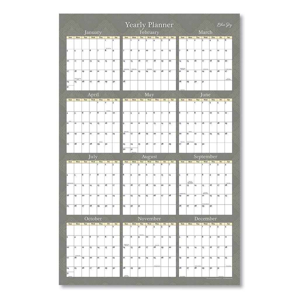 This 36" x 24" jumbo monthly write-on laminated wall calendar allows you to map out your entire year with an erasable writing surface. Use any dry or wet erase markers to make notes in the generous writing spaces. Featuring both horizontal and vertical planning views, this large-scale wall calendar is perfect for work spaces or empty walls. Use push pins or dual-sided mounting strips (not included) to adhere calendar to wall. January - December.