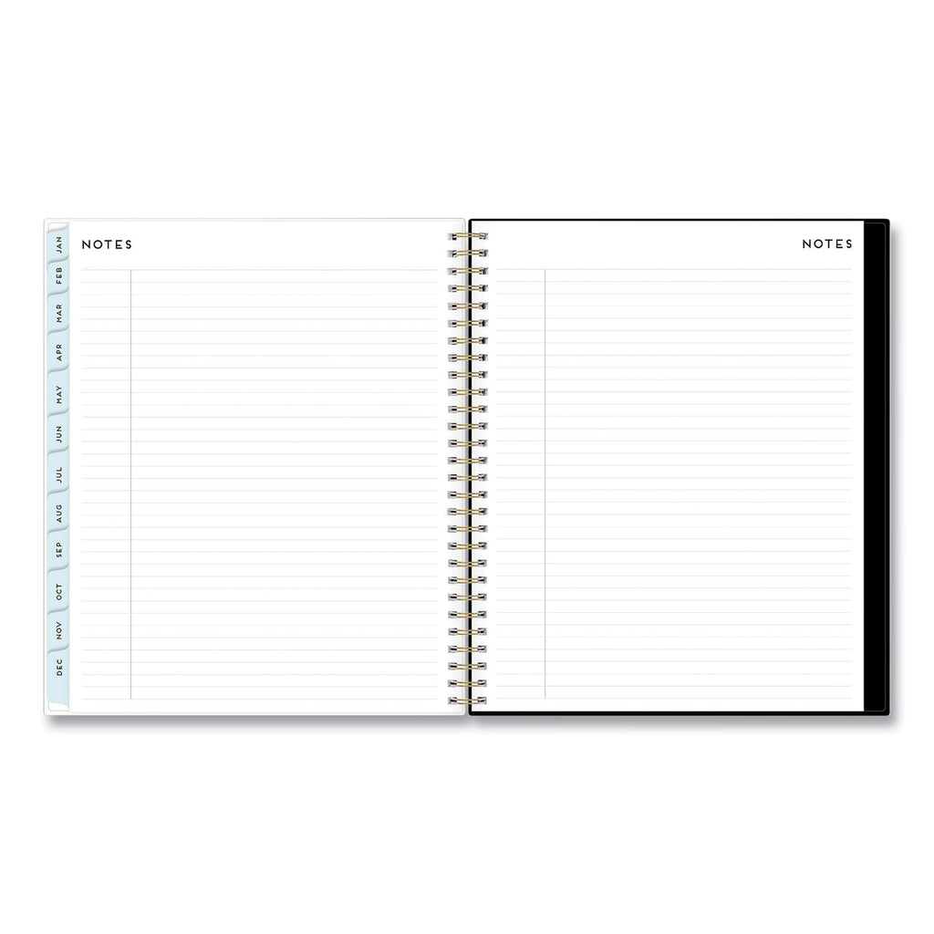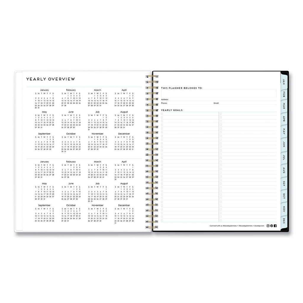 Get ahead with this stunning black and gold floral planner in the "Baccara Dark" design, and stay on top of your monthly plans with stylish flair! Two-page per month spreads offer a visual overview of your time. A separate Yearly Goals page, Contacts pages, Notes pages, Important Dates page and four years of Holidays help you remain poised to tackle whatever may come.