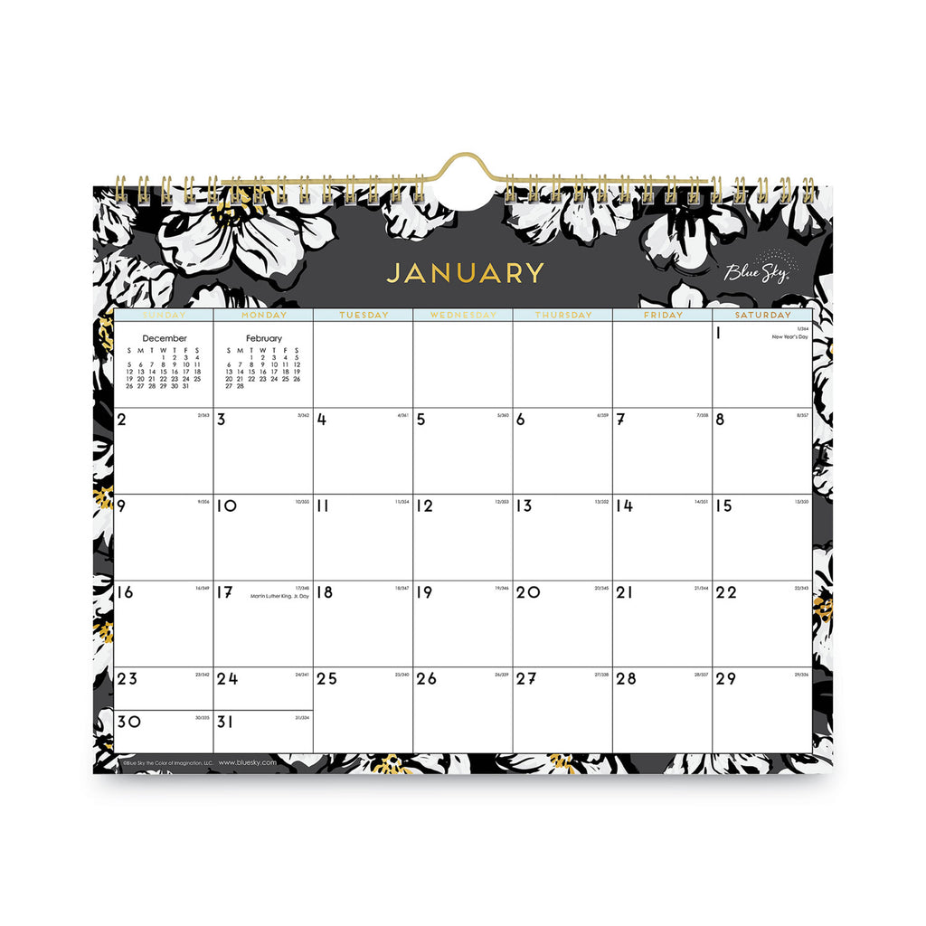 Use this wall calendar as a writing surface to jot down notes, ideas, appointments, reminders and more. Dated planning pages range 12 months from January to December. One page per month format includes Sunday through Saturday scheduling, count of days/days remaining, holidays, and past and future months reference. Wirebound wall calendar is printed on thick, premium quality, acid free pages that reduce ink bleed-through. Twin-wire binding features a sturdy, wall mount hook for secure hanging.