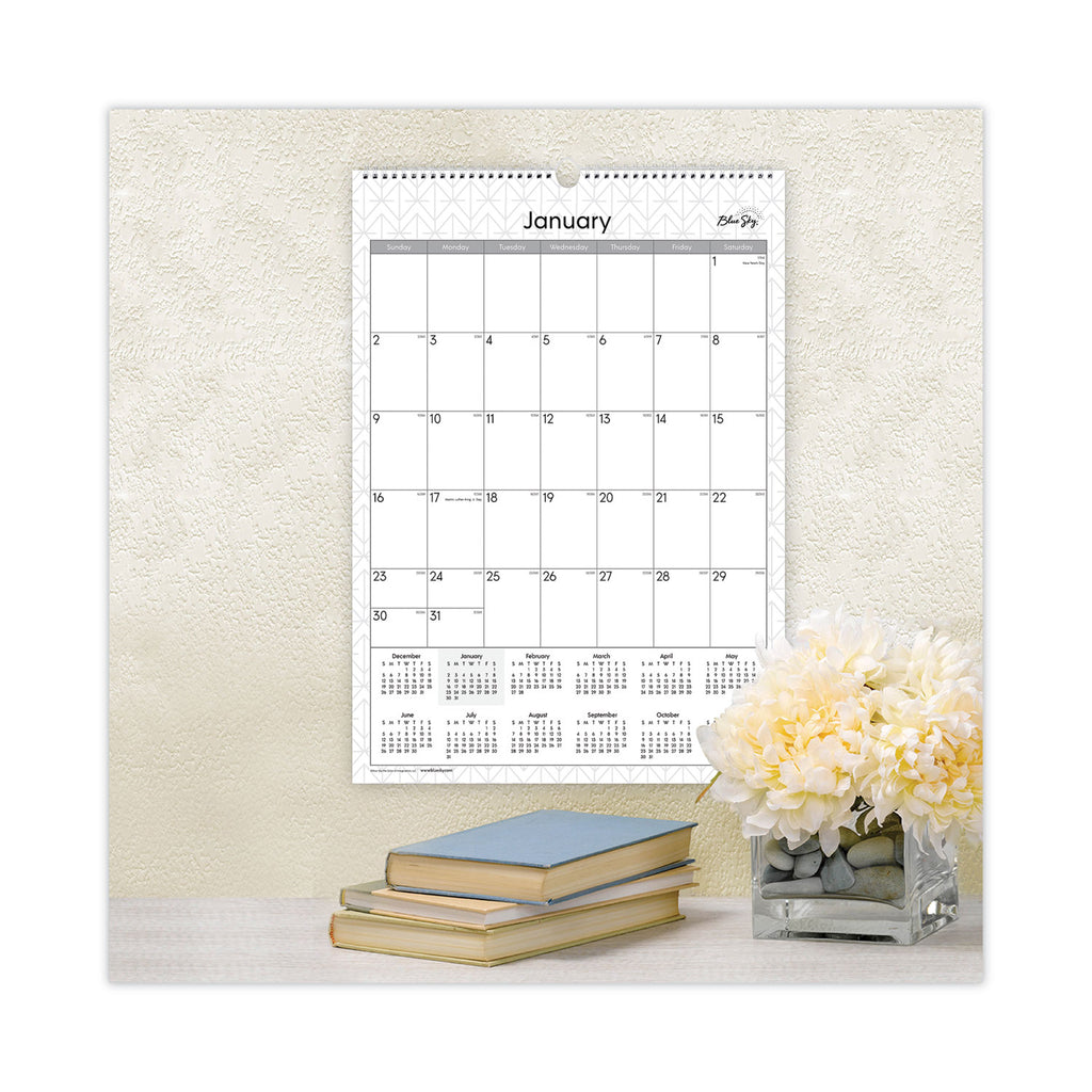 Say hello to ultimate organization in the Enterprise collection. The professional exterior you’re looking for to match every work environment. This wall calendar offers a sturdy wall hook meant for hanging and twin-wire binding provides easy access to each month's plans. Past and future month calendar reference on each page. Ample writing space allows for plenty of opportunity for planning. Thick premium pages prevent ink bleed-through. Printed with soy-based ink on acid-free paper.