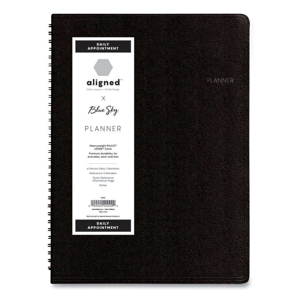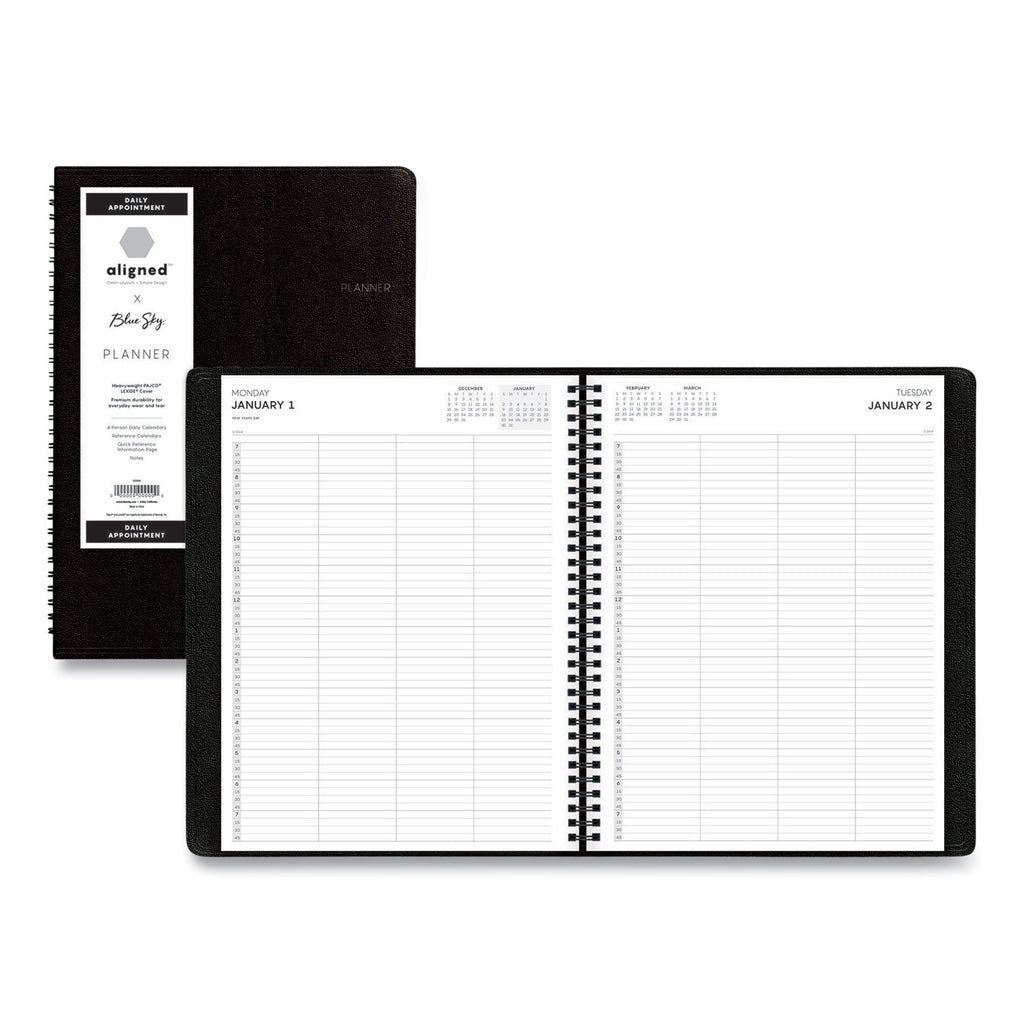 Unburden your life. Accomplish more. Get Aligned™. Clean layouts and a simplified design allow you to keep track of four different schedules on one page. Easily set appointments with 15 minute increment time slots from 7:00 am - 8:45 pm Monday - Friday, Saturday 7:00 am - 5:45 pm, and Sunday with un-timed lines. Heavyweight PAJCO® cover material provides premium durability that stands up to everyday wear and tear. A classic, professional color palette with touches of silver foil and semi-concealed black binding gives this book a sophisticated appearance — now you're ready to conquer the day.