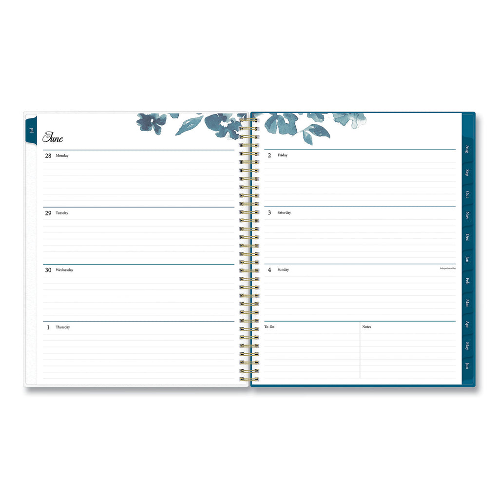 Soothing "Bakah Blue," floral-pattern academic planner offers two-page weekly spreads with ample ruled space for notes and important class project information. Two-page monthly views contain previous and next month reference calendars, along with a handy notes section, to make long-term planning easy. Major holidays are listed, and elapsed/remaining days are noted. Features a sturdy, flexible cover and twin-wire binding with durable, coated monthly tabs. Dated July to June with two extra past-month views (May - June) for easy transitions to a new academic year.