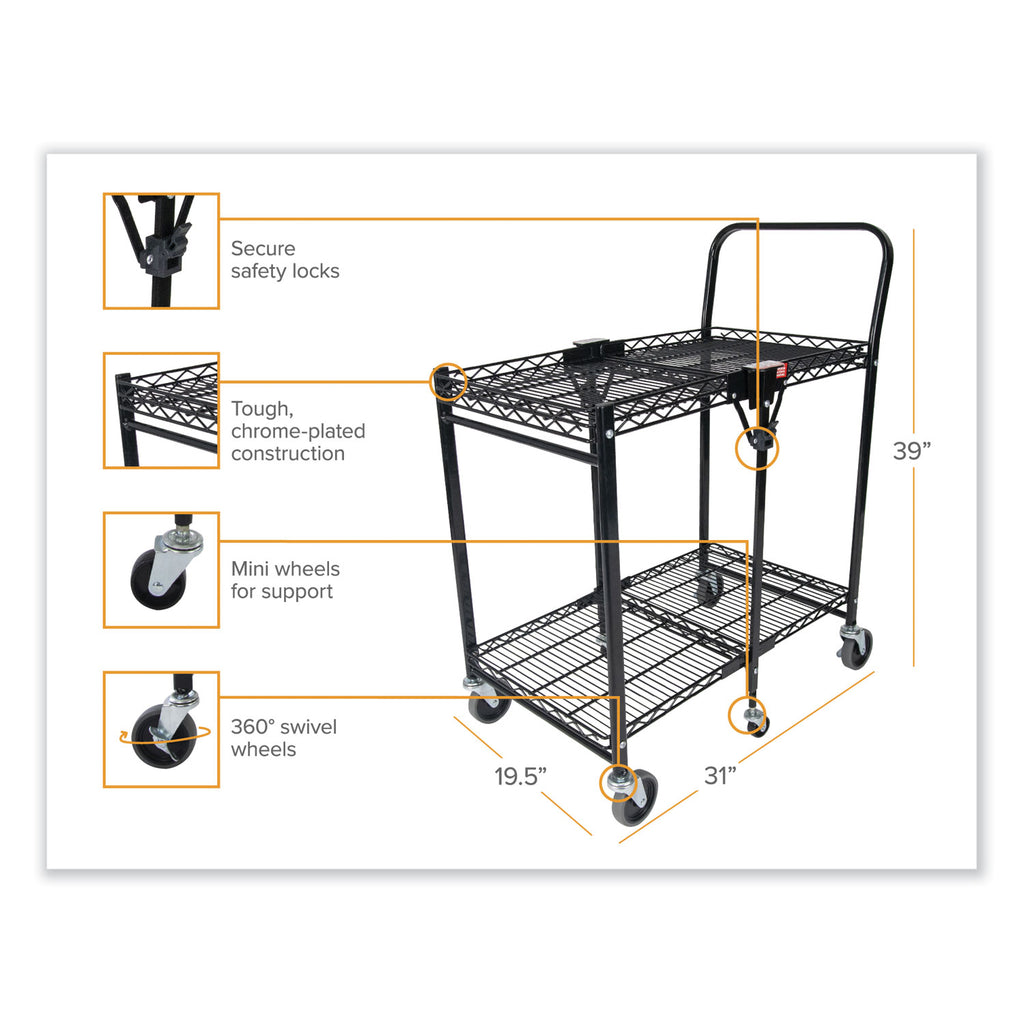 Storage space and location is the number one user issue with current cart designs. Bostitch® Stowaway™ Folding Carts have a patented folding design that stores away in 4x less space! An optional wall mount bracket allows for easy storage behind a door or in an open space. It folds and unfolds in a fraction of a second with secure safety locks for the strongest durability. Dual shelves provide over 1,300 square inches of storage space and can hold up to a massive 500 pounds of storage capacity. Durable finish for easy cleaning and lifetime durability with six, medical style no-mar swivel wheels for quiet operation and easy maneuverability.