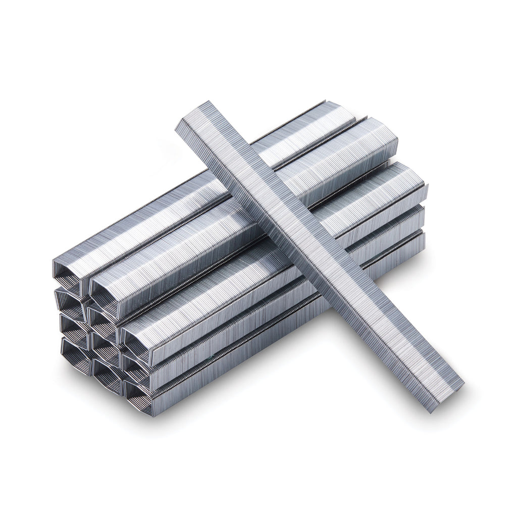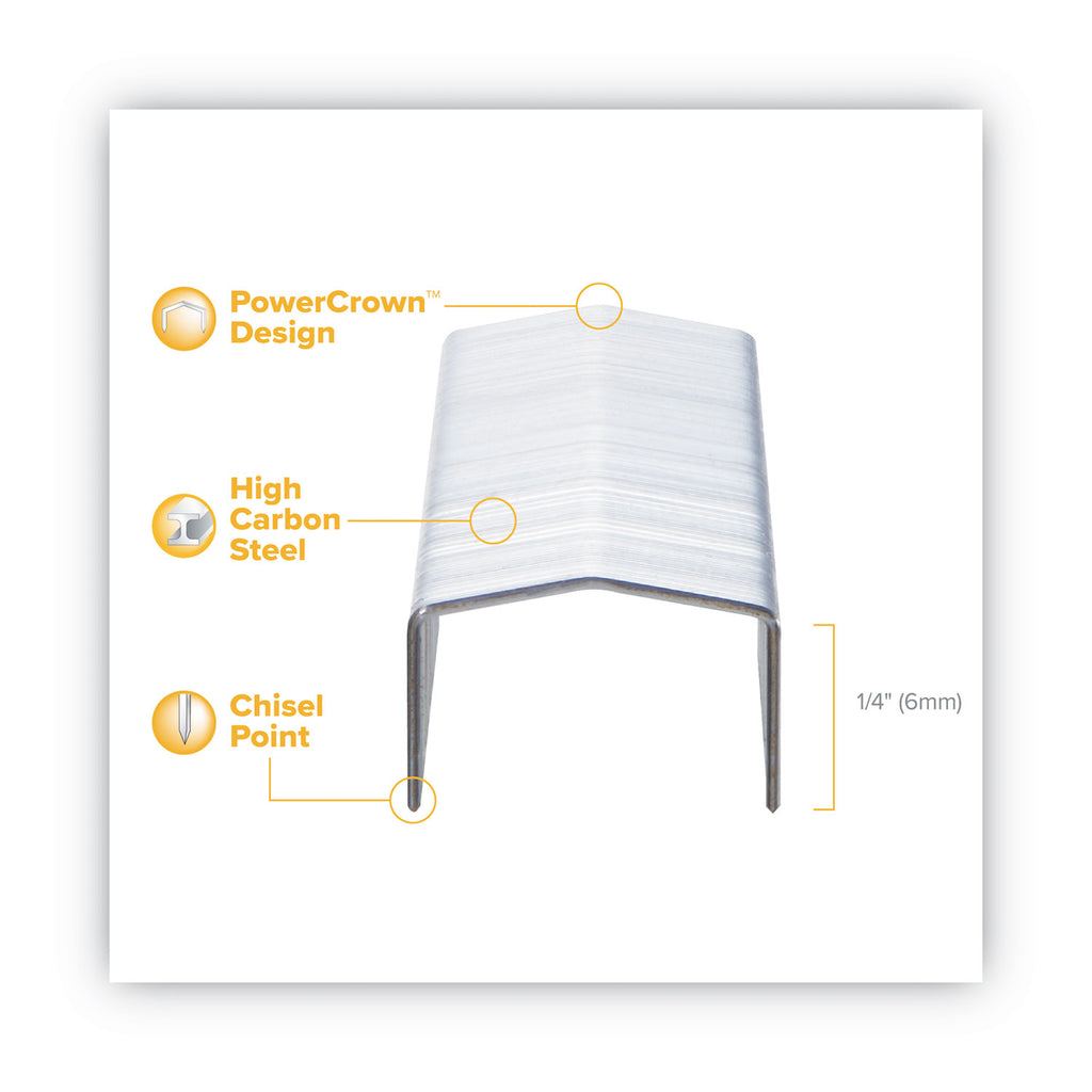 Originally patented in 1932, Bostitch B8 PowerCrown staples staple up to 50% more sheets than standard staples. The unique PowerCrown design forces the staple legs outward during the drive, increasing staple strength and reducing effort. The longer length provides up to 50% more sheet capacity making it the ideal staple for use in office environments. These staples are made from the finest quality wire and feature finely honed chisel points for maximum penetration.