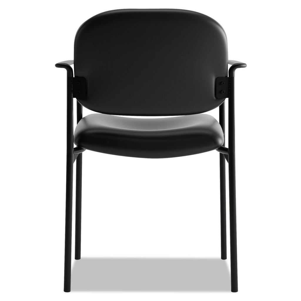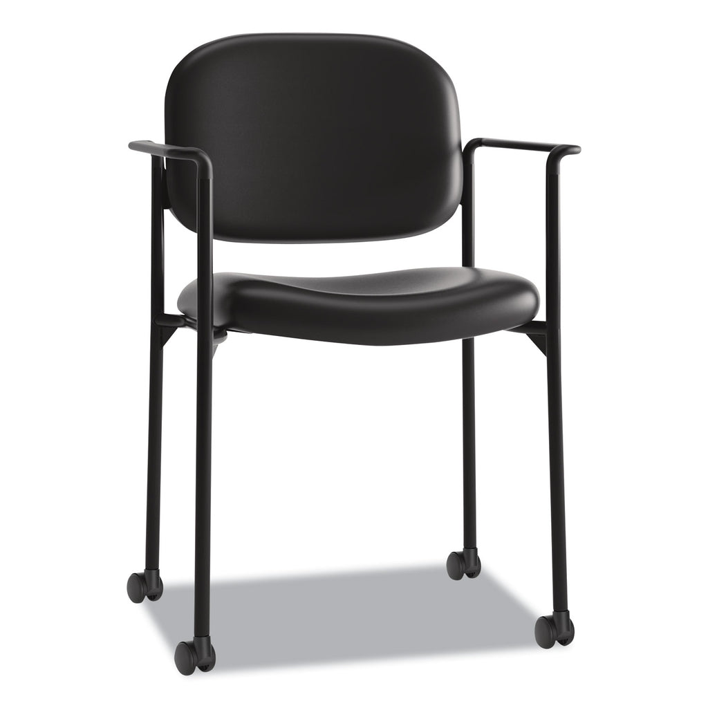 Contemporary design adds flair to any environment. Padded seat and back for comfort. Arms promote relaxed sitting. Steel frame provides extreme strength. Includes both casters and glides to fit your specific office needs.