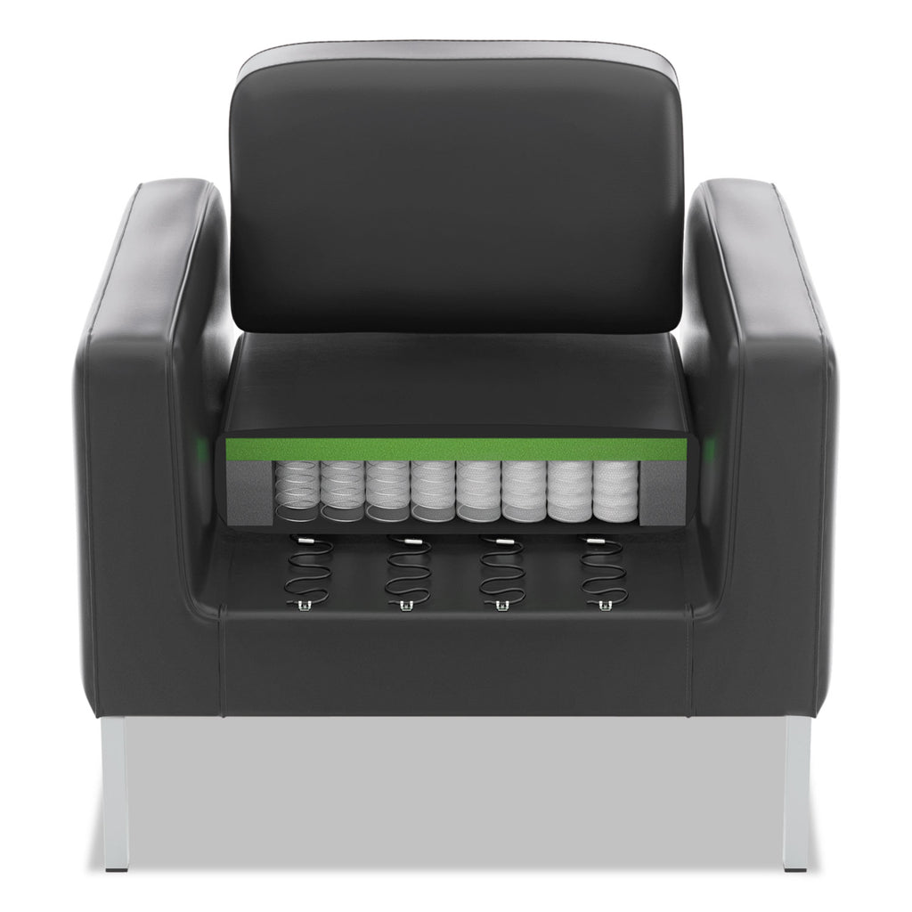 Make an enduring impression and achieve lasting savings. This classic contemporary club chair offers even more than meets the eye. The seat cushion is uniquely engineered for comfort, with over 50 individually wrapped coil springs that reduce pressure points. The back floats above the seat, so cleaning is simple. The style is so impressive, people will assume you spent a lot more than you did. Bonded leather upholstery.