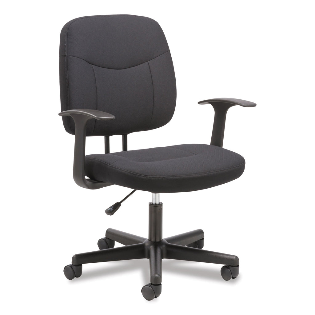 Pneumatic seat height adjustment and 360-degree swivel allows you to customize your comfort. Sculpted arms provide comfy all-day support for upper body and shoulders. Smooth-rolling casters and durable wheels hold up even under heavy use. Padded seat and back relieve pressure points and deliver long-lasting comfort.
