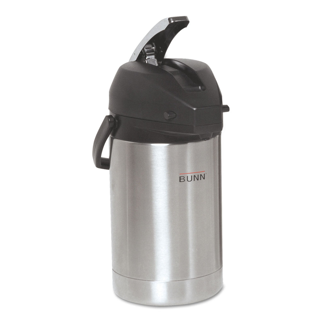 Conveniently brew directly from brewer. Beverage dispenser features an all-stainless steel construction and lever style pump for easy serving. Seamless stainless steel vacuum liner is durable and ensures beverages remain cold or hot for hours. Lid is designed to swing open fully for brewing directly into airpot funnel for ease of filling and maximum heat retention.