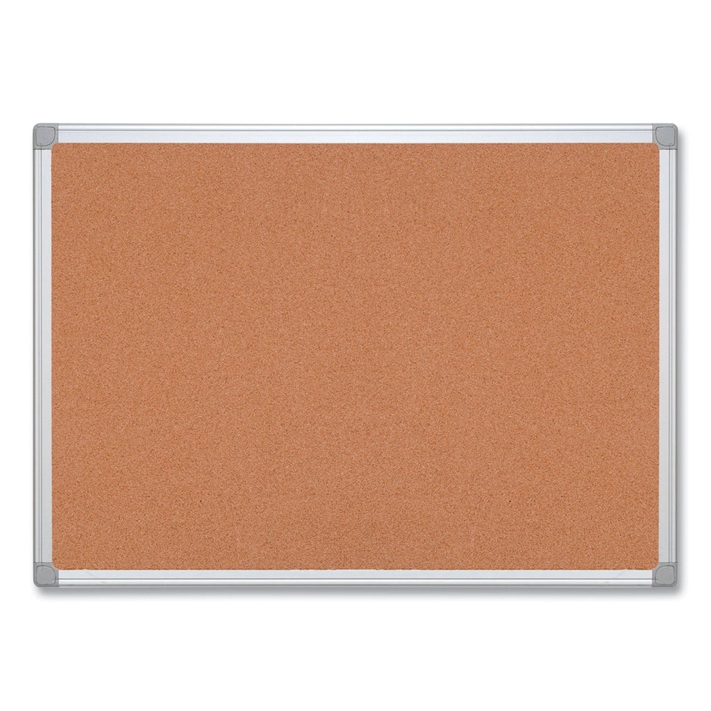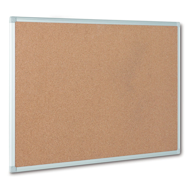 Bulletin board is an efficient and versatile solution for visual communication. Decorative and practical, it's a tool that serves as an important aid to sharing information. Manufactured using post-consumer and post-industrial waste, it's also nearly entirely recyclable. Real cork surface is extremely durable and resilient. Sturdy aluminum frame features an easy to mount four-corner system. Hardware included.