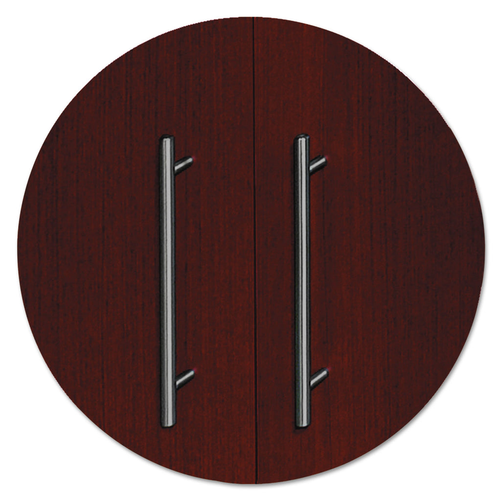 The 3-in-1 conference cabinet is a perfect all-in-one solution for office or conference room spaces. The bulletin board features a magnetic porcelain surface that resists scratching and ghosting and is suitable for extensive use. The large door features a easy no-pinch fully adjustable easel pad retainer. The retractable matte projection screen is perfect for presenting your PowerPoint presentations or slides. The cabinet's laminate surface cleans easily and withstands years of use. The contemporary matte handles make this a striking addition to any decor.