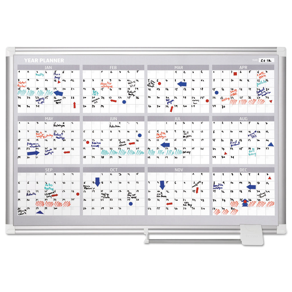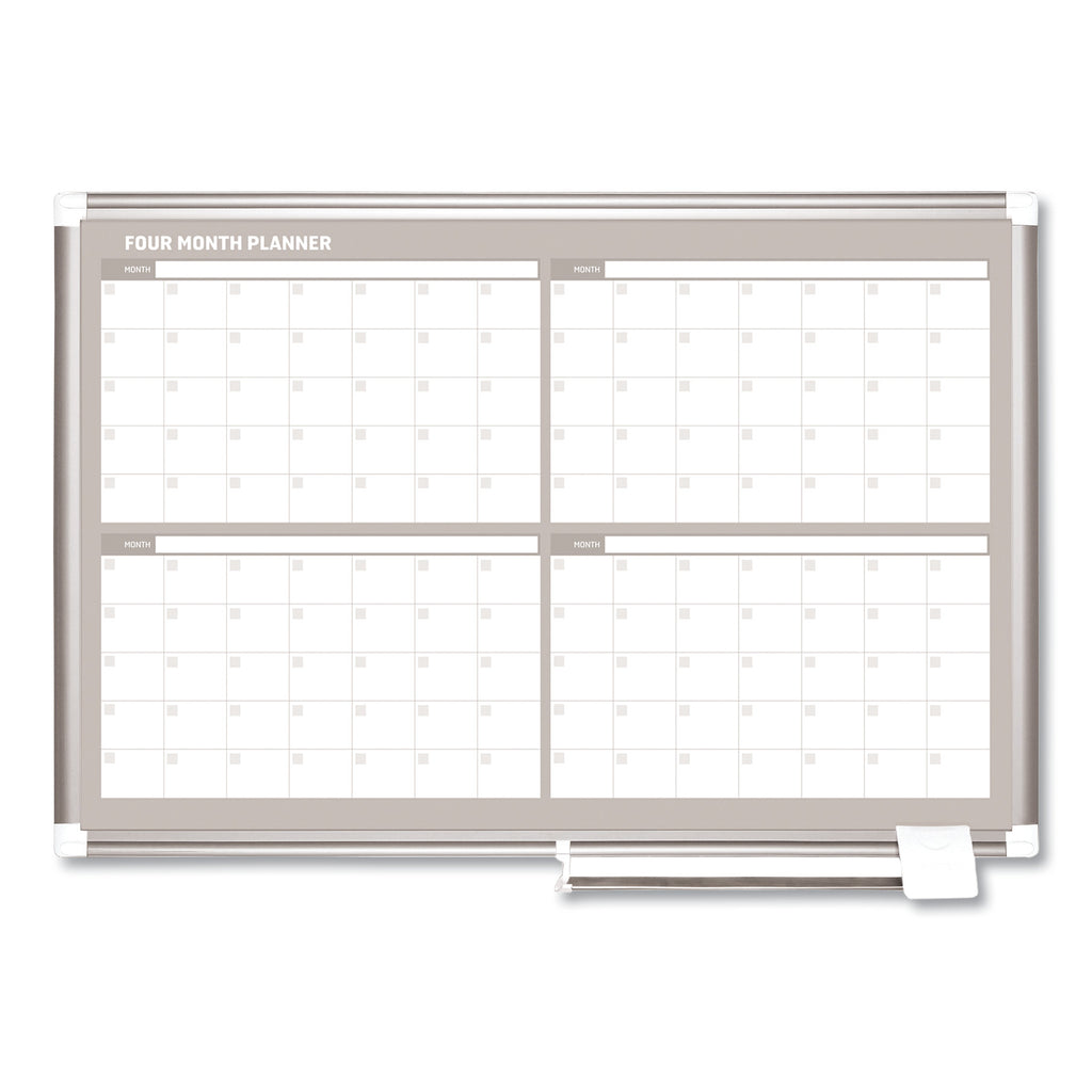 Organization is vital for the success of every business or enterprise. MasterVision® Planning Boards are excellent tools that allow you to keep scheduling and planning on time. Keeping important dates and tasks on display, organizing work-groups or just planning ahead is practical and easy. Magnetic Gold Ultra™ dry erase board allows you to post notes and messages as well as write. The lacquered steel surface is suitable for frequent use. Sturdy aluminum frame features an adjustable tray and the four-corner system for easy mounting.