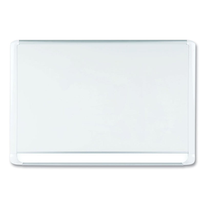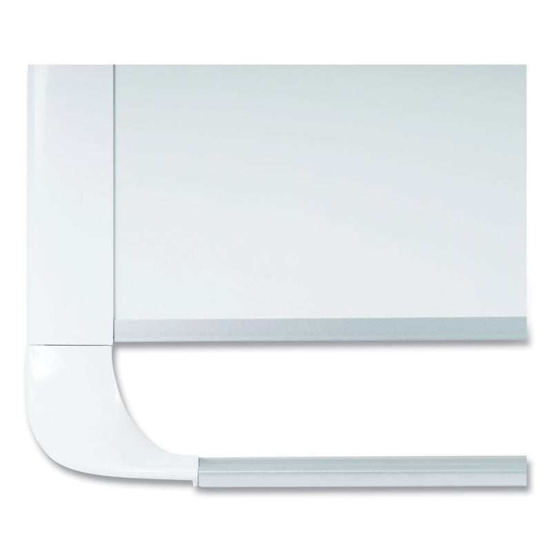 Magnetic Gold Ultra™ dry erase board allows you to post notes and messages as well as write. The lacquered steel surface is suitable for frequent use. Sleek, contemporary frame design combines aluminum and black plastic to provide a stunning yet sturdy effect that brings dry-erase into the 21st century. Full-length aluminum tray keeps what you need near to hand.