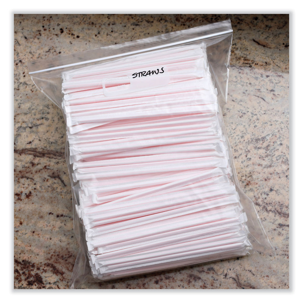 Keep food safe with sturdy, secure, food storage bags. Ziplock seals tightly, yet it is easy to open. Highly visible, white, writeable label for date and content allows easy identification for freezing and storage. Distinct dispenser box helps you maintain a clean and organized workspace and quickly grab a bag while doing food prep and clean-up. Choose convenient, durable food storage bags that provide superior performance and value.