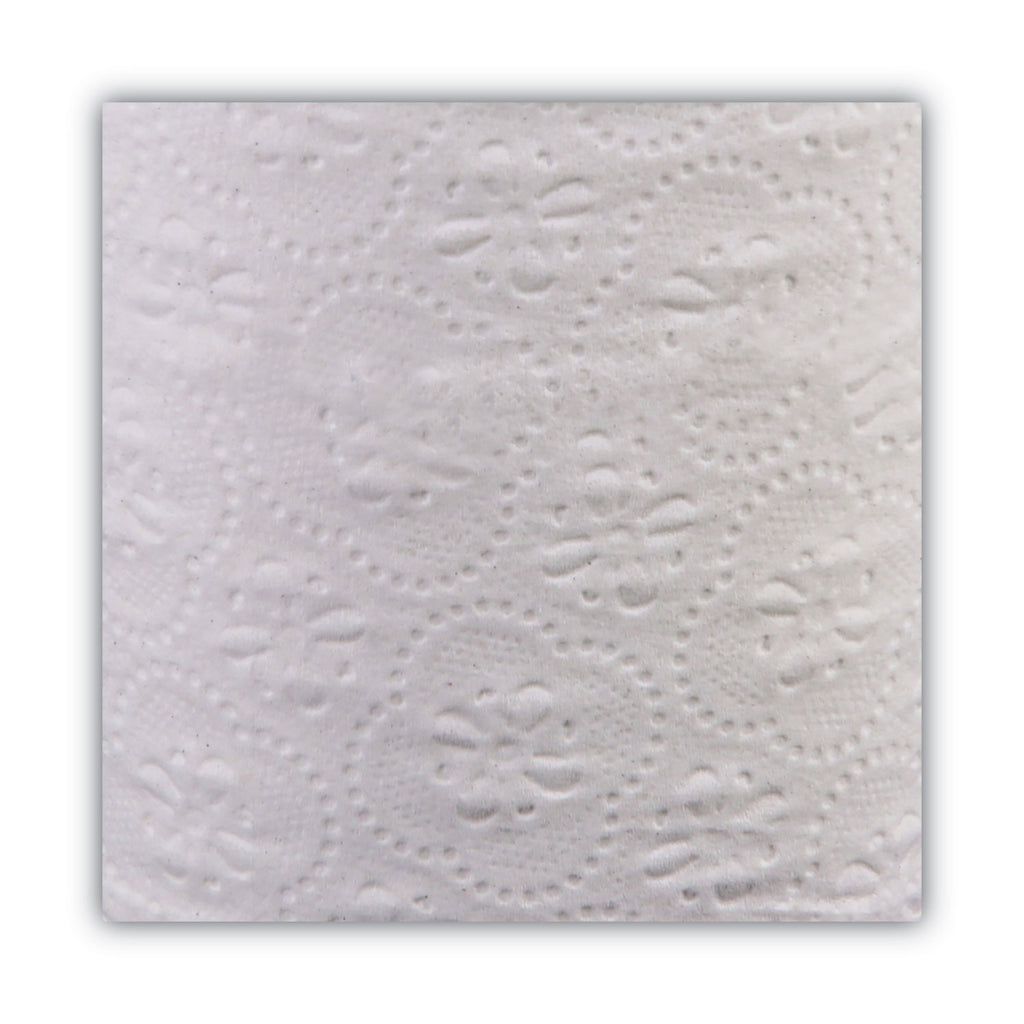 Quality, durable toilet tissue that’s soft and absorbent, yet available at an economical price. Two-ply, durable, embossed white tissue on a standard size perforated roll. Individually wrapped for maximum cleanliness and safety. Ideal for use in any industrial, office, restaurant, or retail bathroom where standard size rolls are used. Fits within standard size toilet-roll paper holder or dispenser.
