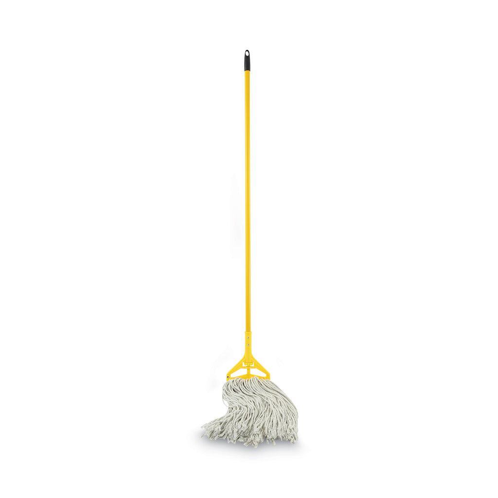 Boardwalk® Plastic Head Quick Change Mop Handle is equipped with a hinged side latch with an adjustable roller knob. Quickly and easily loads most mop heads for convenient replacing. The vinyl-covered aluminum handle with smooth grip is ideal for regular use with or without gloves in any environment. Strong and reliable, the coated finish is easily wiped clean and repels dust and water. Loophole is the top can be used for hanging.
